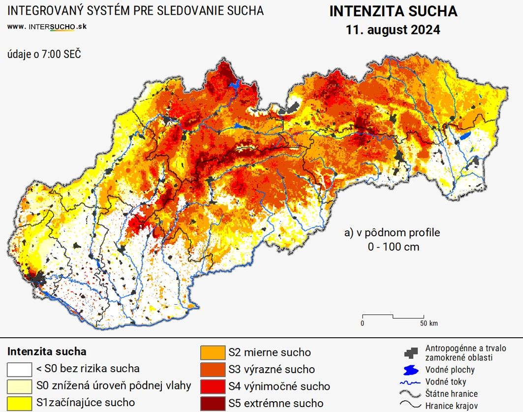 Od polovice júla panuje na našom území suchšie počasie. Na vine sú jednotlivé prúdy teplého vzduchu a stabilného počasia. Pôdna vrstva sa vysušuje a sucho začína trápiť prakticky celé naše územie.