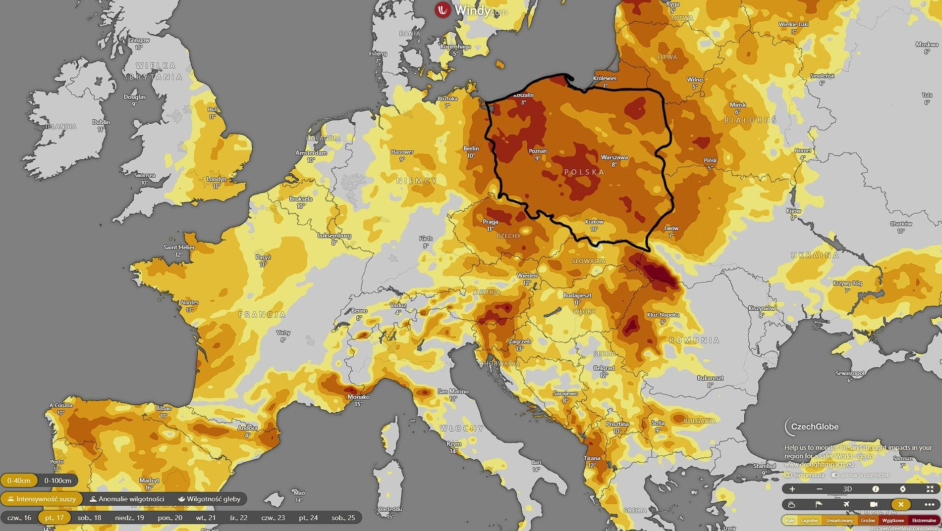 V celoeurópskom porovnaní je Poľsko v mimoriadne nepriaznivej pozícii. Len ťažko by sme hľadali krajinu, ktorá by čelila tak rozsiahlemu suchu prakticky na celom svojom území. Podobné, hoci miernejšie podmienky aktuálne panujú v Česku, Rakúsku, Maďarsku či Litve.