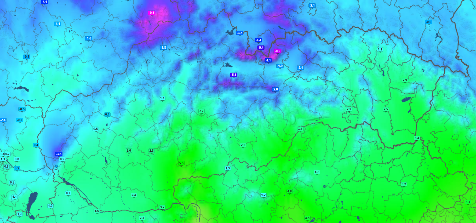 Z hľadiska teplôt je po 6. hodine ráno najchladnejšie na Spiši, kde sa hodnoty pohybujú okolo −3 °C. Počas dňa sa očakáva ďalšie ochladzovanie aj v ostatných regiónoch, pričom niektoré oblasti zažijú celodenný mráz.