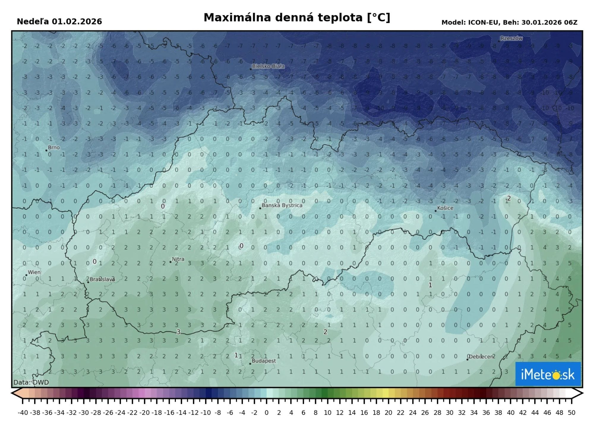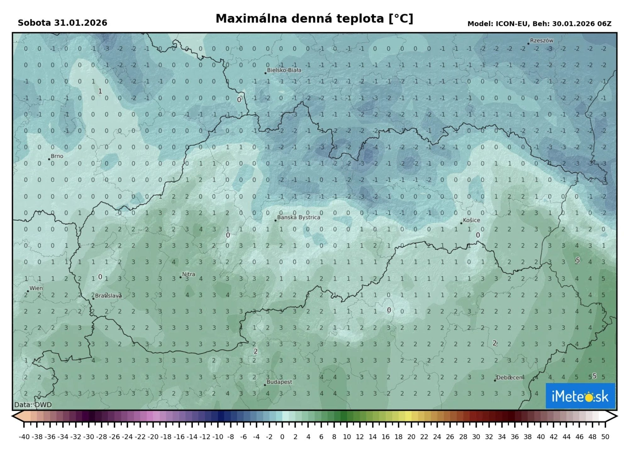 Naopak na západe a na juhu stredného Slovenska ochladenie príliš nezaznamenajú. Denné teploty sa tu budú stále pohybovať od 0 do +3 °C.