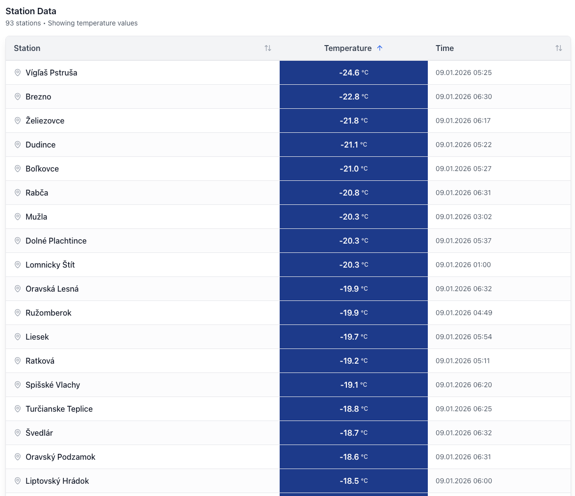 Síce nejde o oficiálne dáta, ale veľmi zaujímavé čísla ukazujú aj amatérske meteostanice v tzv. mrazivých dolinách Slovenska. Ide o oblasti, kde je v priemere chladnejšie až o 5 stupňov a do týchto oblastí umiestňujú nadšenci meteostanice. Tieto hodnoty síce nie sú reprezentatívne pre celé naše územie, ukazujú ale veľmi zaujímavé výnimky.