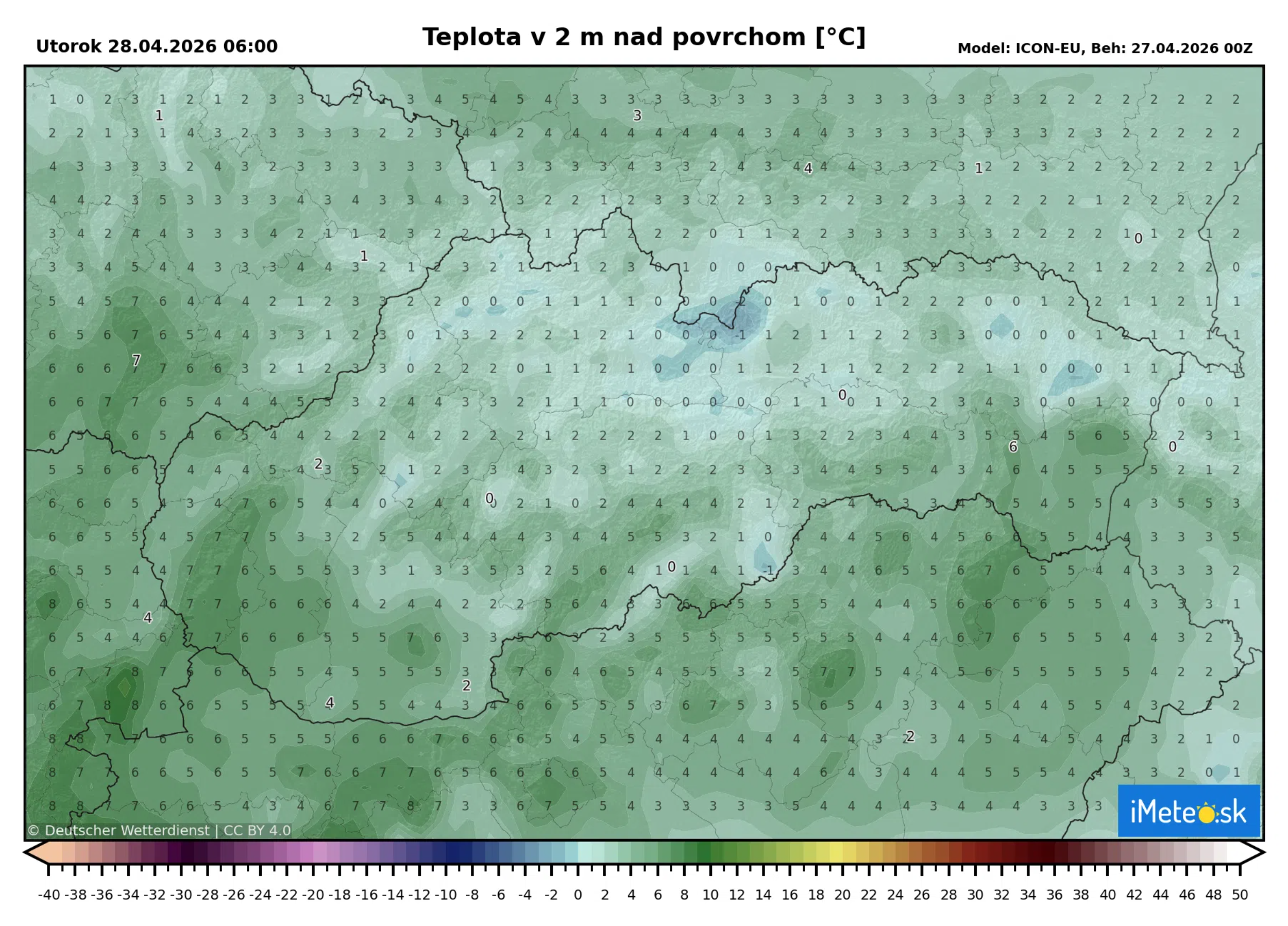 Zajtrajšie ráno bude už o niečo miernejšie a čakajú nás prízemné mrazy. Teploty na strednom a severnom Slovensku budú klesať do -2 °C.