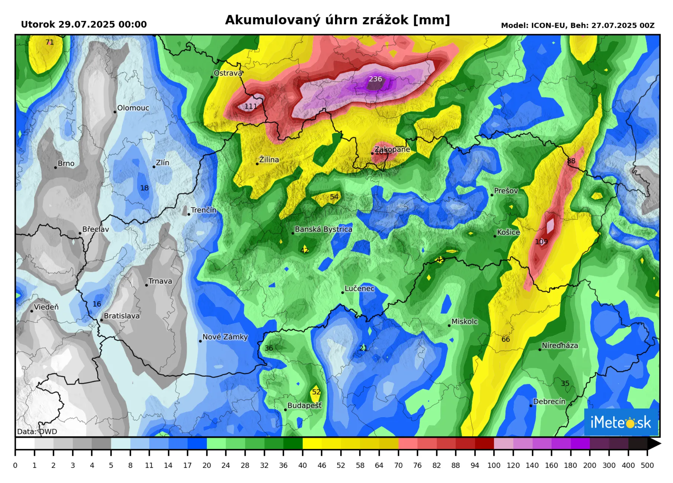Dokopy tak až do zajtrajšej polnoci spadne lokálne až 100 mm zrážok. Tie budú sústredené do oblasti severného a lokálne aj východného Slovenska, na ostatnom území to bude ďalších približne 40 až 50 milimetrov.