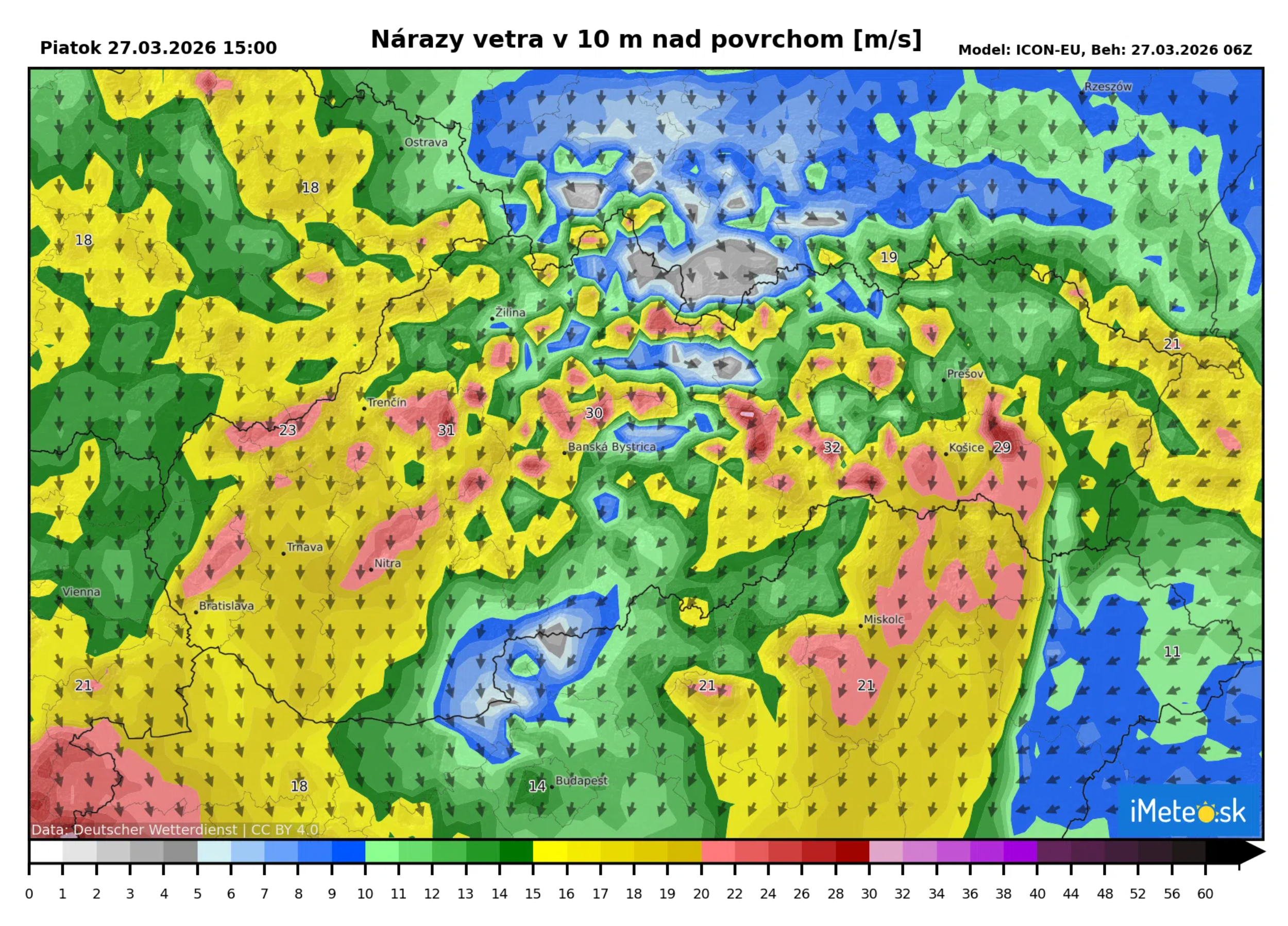 Nárazy vetra dosahujú rýchlosť 15 až 25 metrov za sekundu, pričom na horách presahujú poryvy aj 30 metrov za sekundu. Najmä na severe Slovenska, kde sa vyskytuje aj sneženie, to spôsobuje komplikácie v doprave v podobe snehových jazykov a závejov.