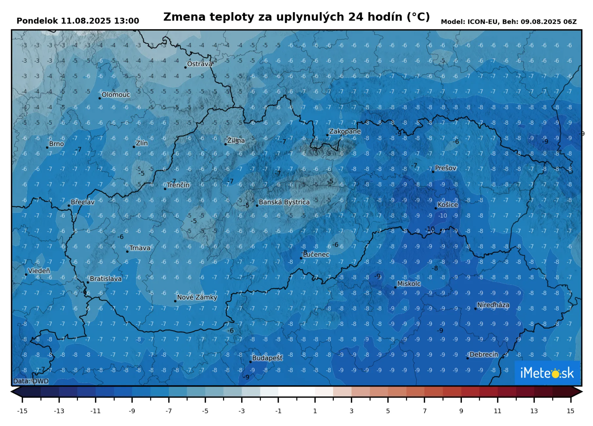 Čo však prinesie je pomerne výrazné ochladenie. Tento front totiž ukončí príliv teplého vzduchu od juhu a od severozápadu sa do našej oblasti dostane chladnejší vzduch, ktorý pocítime hneď v pondelok.