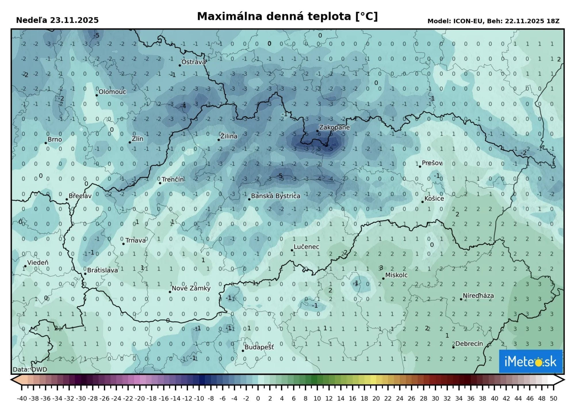 Noc z nedele na pondelok prinesie na Slovensko veľmi nízke teploty, ktoré poklesnú na -1 až -10 °C, no v dolinách a v kotlinách bude len -15 °C. Poklesu teplôt dopomôže to, že na väčšine územia sa bude nachádzať snehová pokrývka a súčasne sa vyjasní, čo pomáha poklesu teplôt.