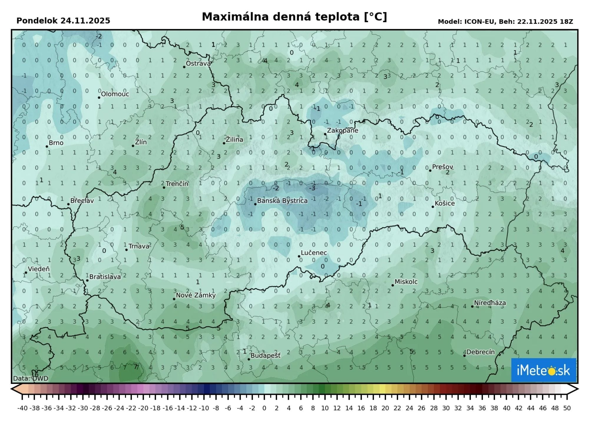 V pondelok cez deň však začne cez naše územie postupovať teplý front, ktorý postupne do nížin prinesie dážď a príliv teplého vzduchu od západu zodvihne teploty na takmer celom území nad nulu. Najteplejšie bude na juhozápade, kde sa teplota dostane až na +5 °C, ale teplo bude aj v Trenčianskom kraji.