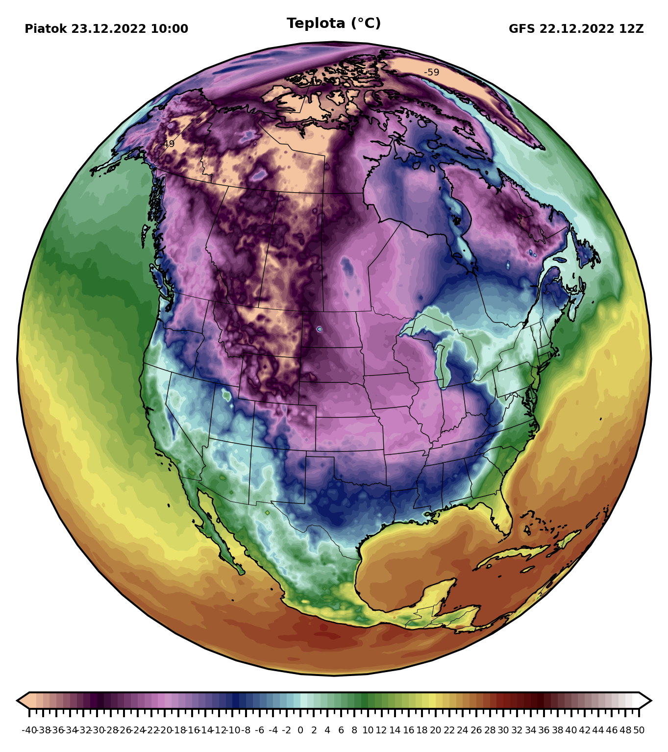 Už vo štvrtok v Elk Parku v Montane bola teplota -46 1C a v Des Moines v štáte Iowa -38 °C. V Denveri v štáte Colorado bolo najchladnejšie za posledných 32 rokov. Naposledy podobne extrémne počasie zažila Amerika v roku 1983. Očakáva sa, že tohtoročné Vianoce tieto rekordné hodnoty prekonajú.