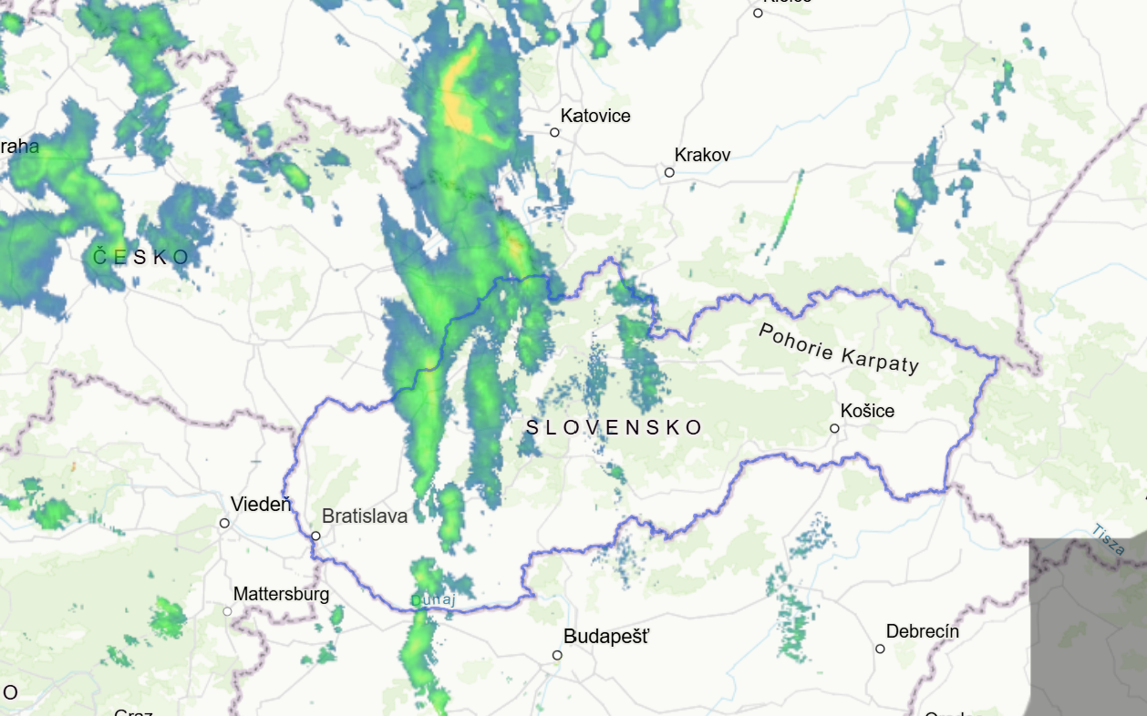 Už v týchto chvíľach vidieť na aktuálnom radare výskyt snehových zrážok predovšetkým v oblasti severného Slovenska.