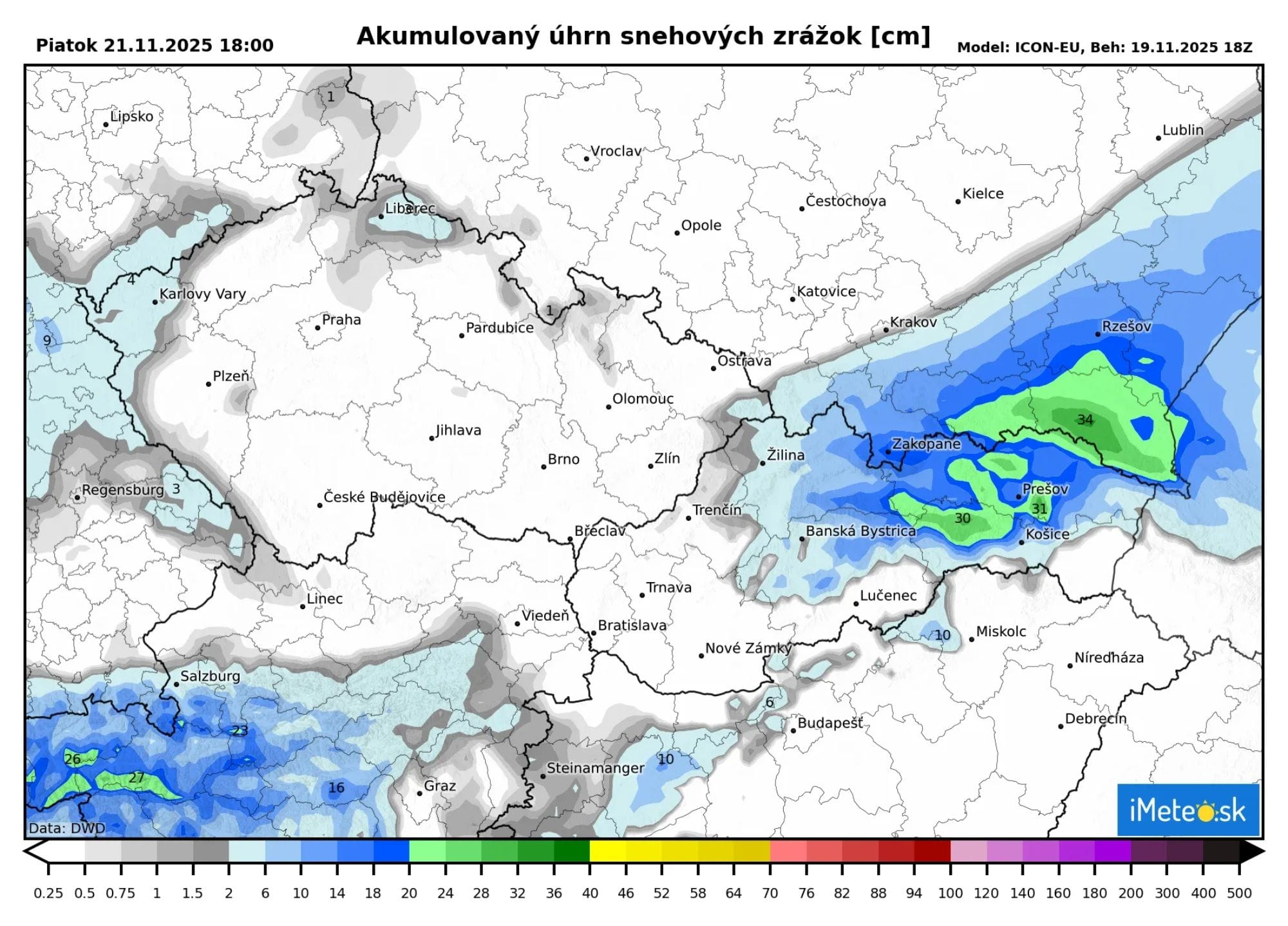 Do piatkového večera by sa celková výška nového snehu na Spiši, na Gemeri, či na Šariši mohla pohybovať až do 30 cm. Na východe Žilinského kraja to bude od 10 do 20 cm a na ďalších miestach nášho územia napadne niekoľko centimetrov nového snehu.