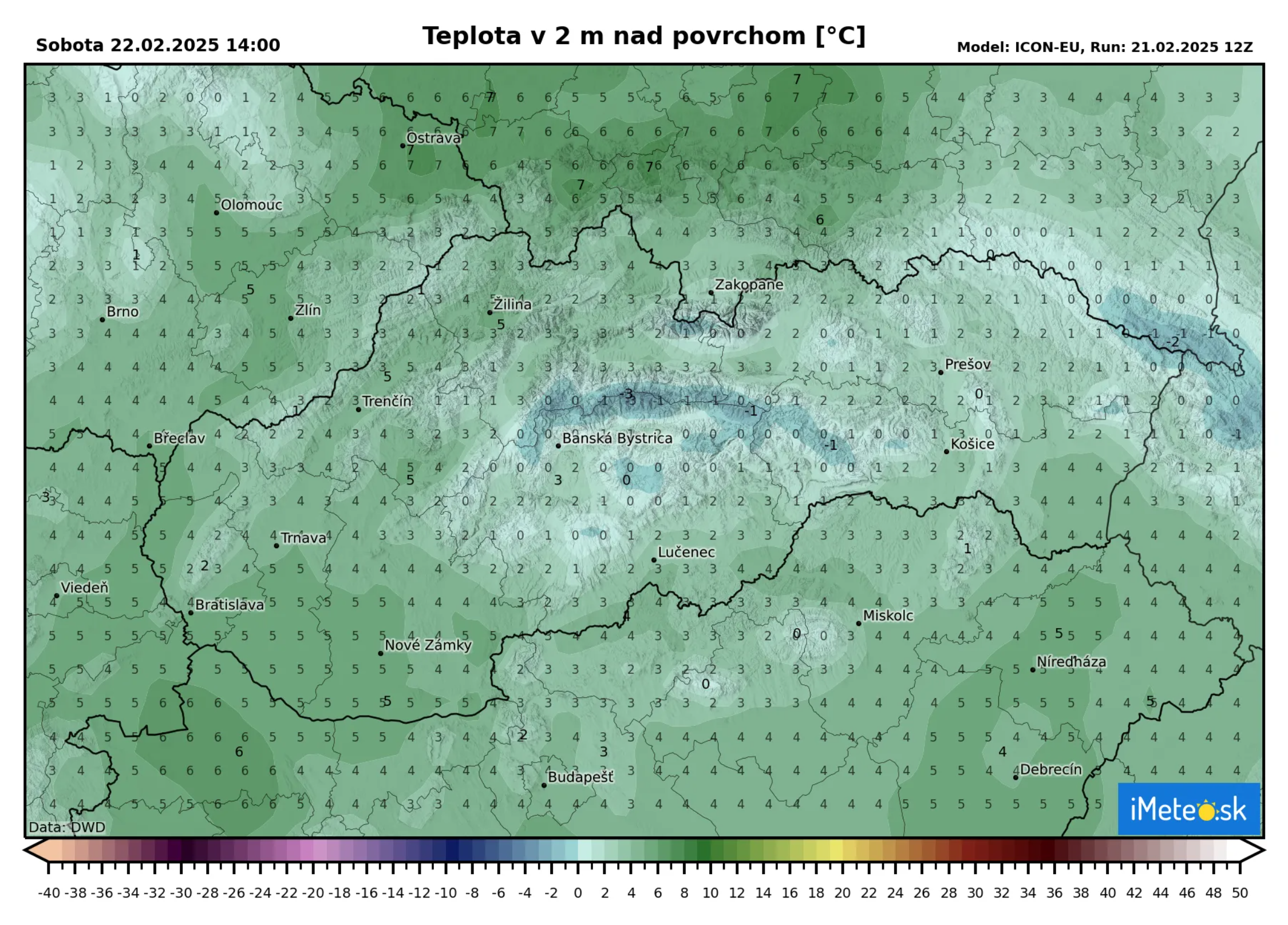 Maximálne teploty dnes vystúpia na viacerých miestach západného Slovenska od Podunajskej nížiny až po Žilinu až na +5 °C, druhým najteplejším regiónom bude Východoslovenská nížina, kde bude do +4 °C.