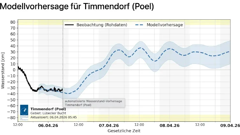 V zátoke pri ostrove Poel v Meklenbursku-Predpomoransku pokračuje dráma okolo vráskavca dlhoplutvého menom Timmy, ktorý tam uviazol už minulý týždeň. Hoci sa ešte v nedeľu očakával ďalší pokles hladiny, aktuálna predpoveď priniesla nečakanú zmenu.