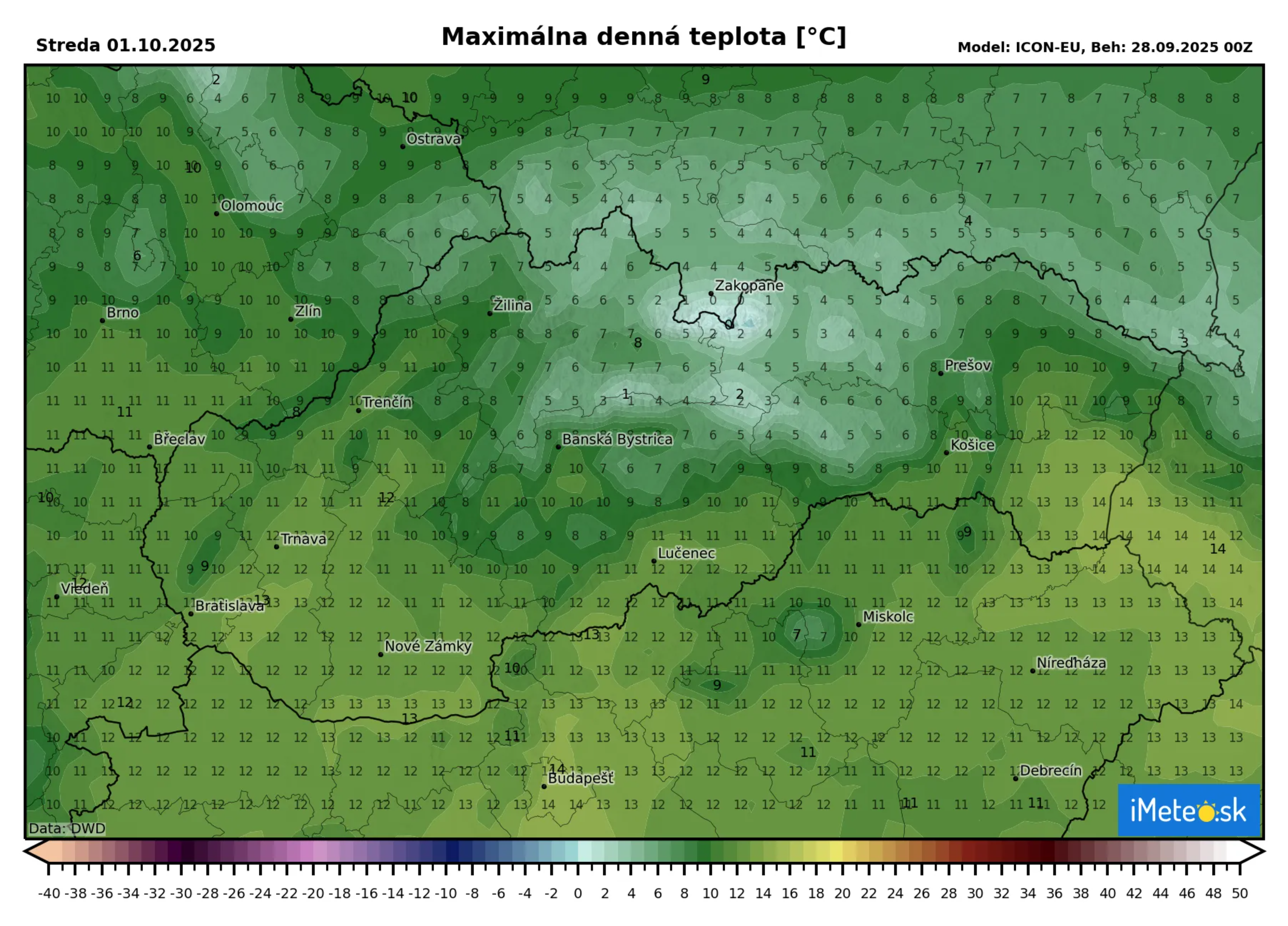 V stredu by malo byť ešte chladnejšie a maximálne teploty sa vyšplhajú len od +4 °C na severe po +14 °C v najteplejších lokalitách Slovenska.