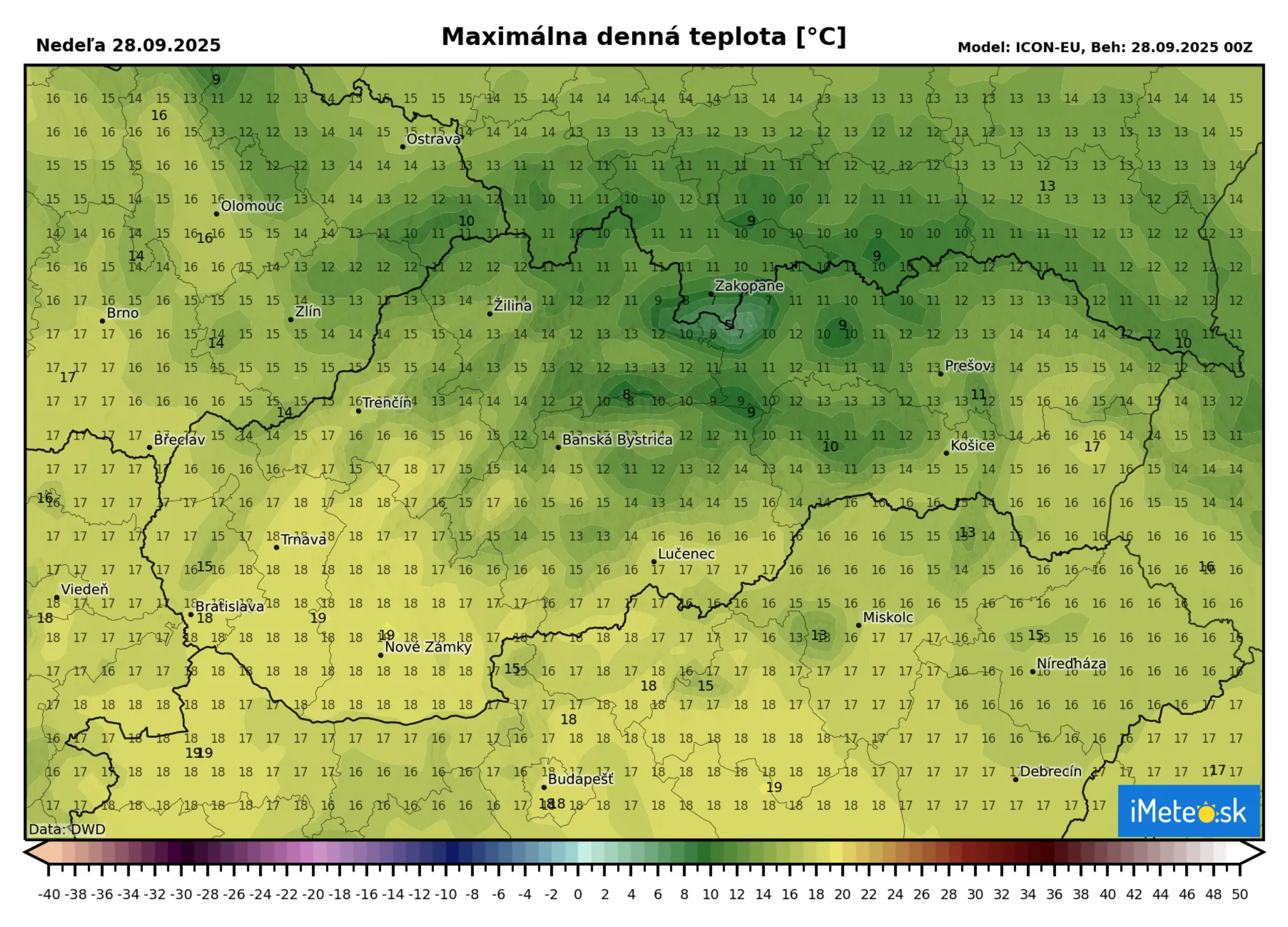 Napriek tomu, že z rána nám už hrozia prízemné mrazy, teploty dnes vystúpia k +15 až +20 °C, na severe a východe miestami okolo +13 °C. Teplota na horách vo výške 1 500 m n. m. sa bude pohybovať okolo +5 °C.