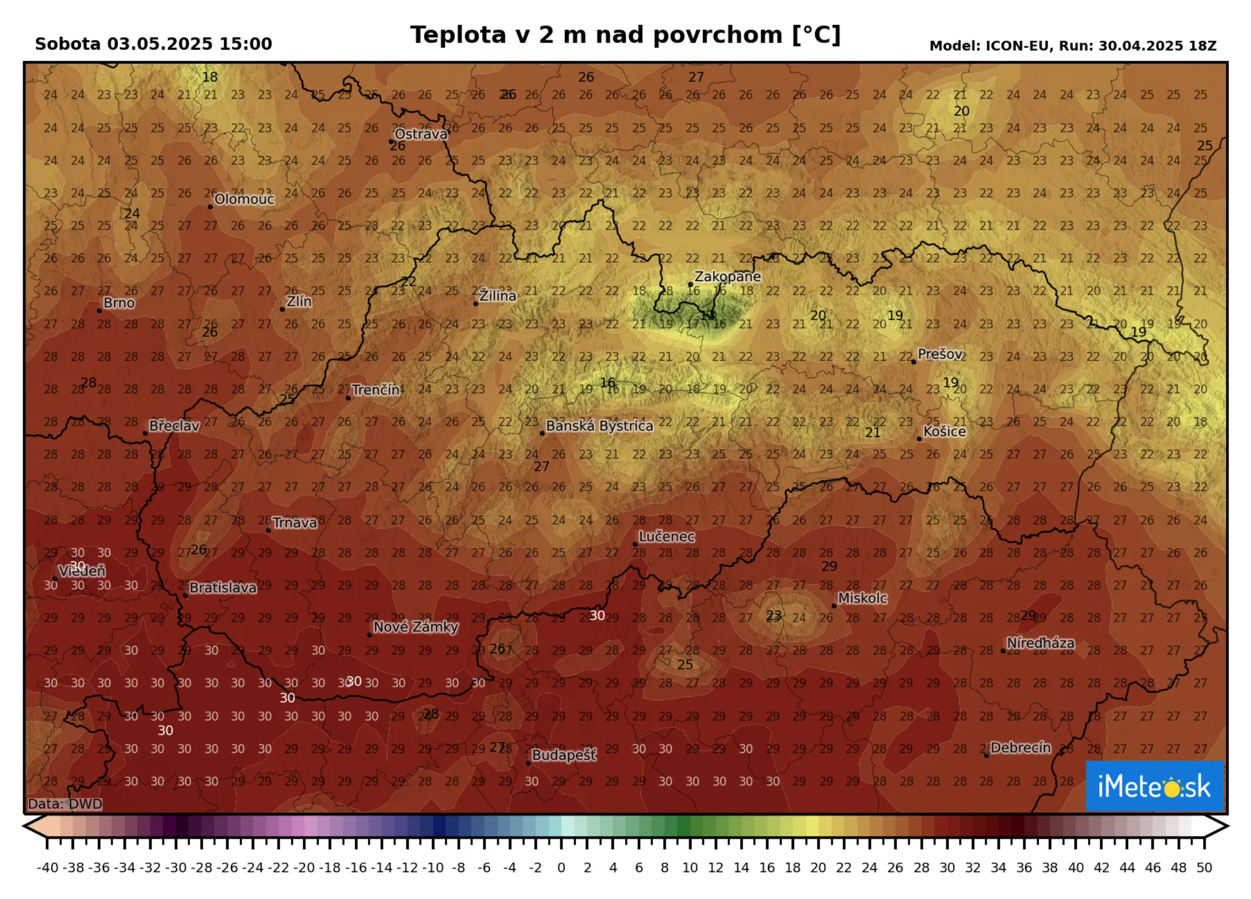 Ako vieme, dosiahnutie hranice +25 °C znamená letný deň a pokorenie teploty +30 °C je tropická teplota z meteorologického hľadiska. Možno teda povedať, že Slovensko môže v sobotu na juhu krajiny zažiť prvé trópy tohto roka.