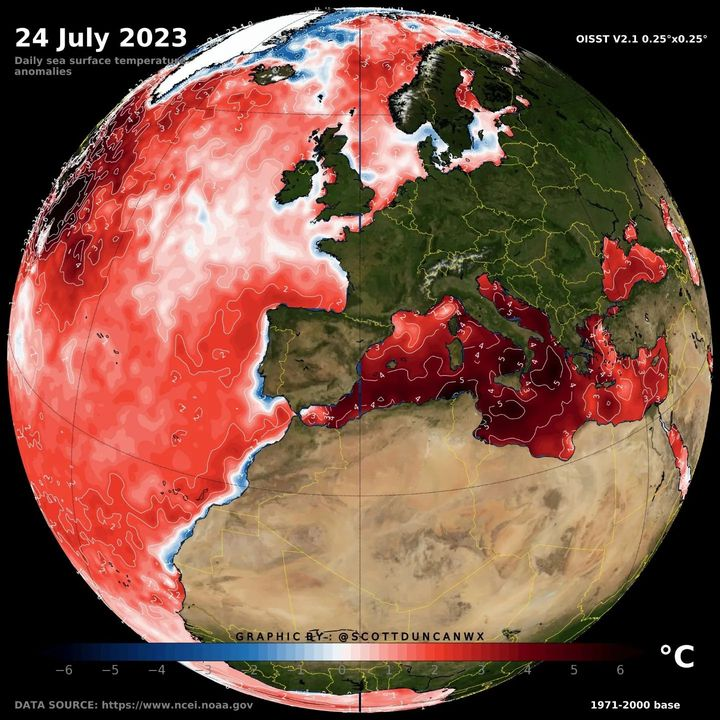 Takéto vysoké teploty vody ohrozujú aj prirodzený ekosystém Stredozemného mora. Živočíchy sú zvyknuté na iné teploty a to môže spôsobiť ich masívny úhyn.
