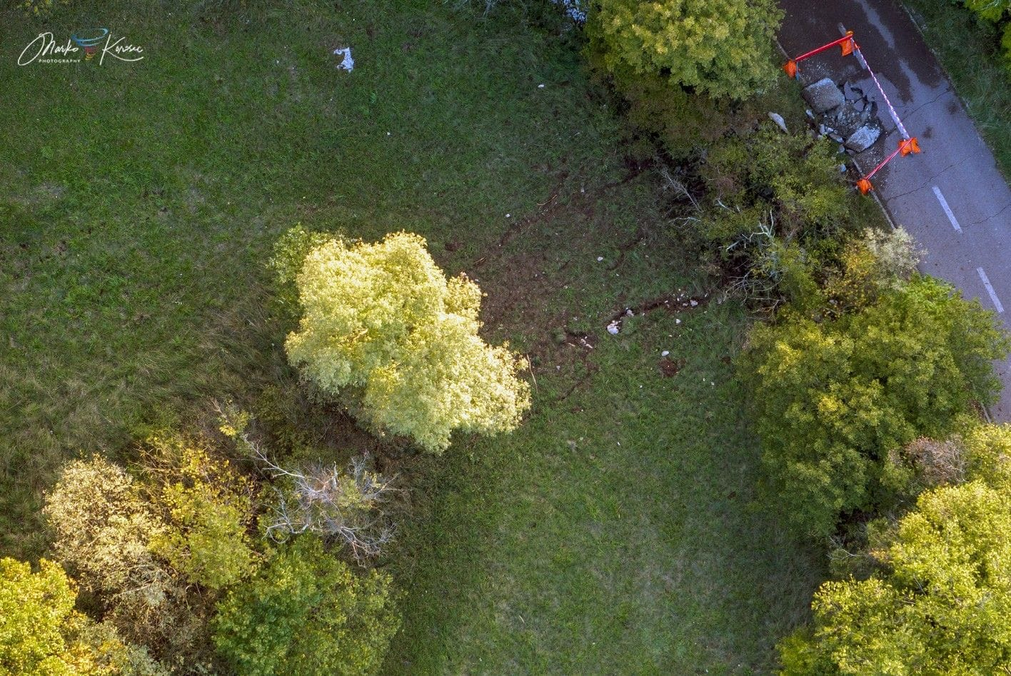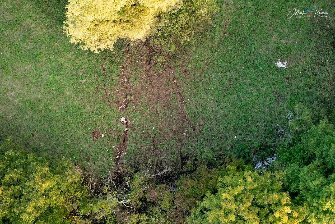 Na viacerých miestach je vidieť spálenú a rozrytú vegetáciu, vyrazené kúsky pôdy a poškodenú kôru stromov. Škody zdokumentoval fotograf priamo v teréne aj pomocou dronu.