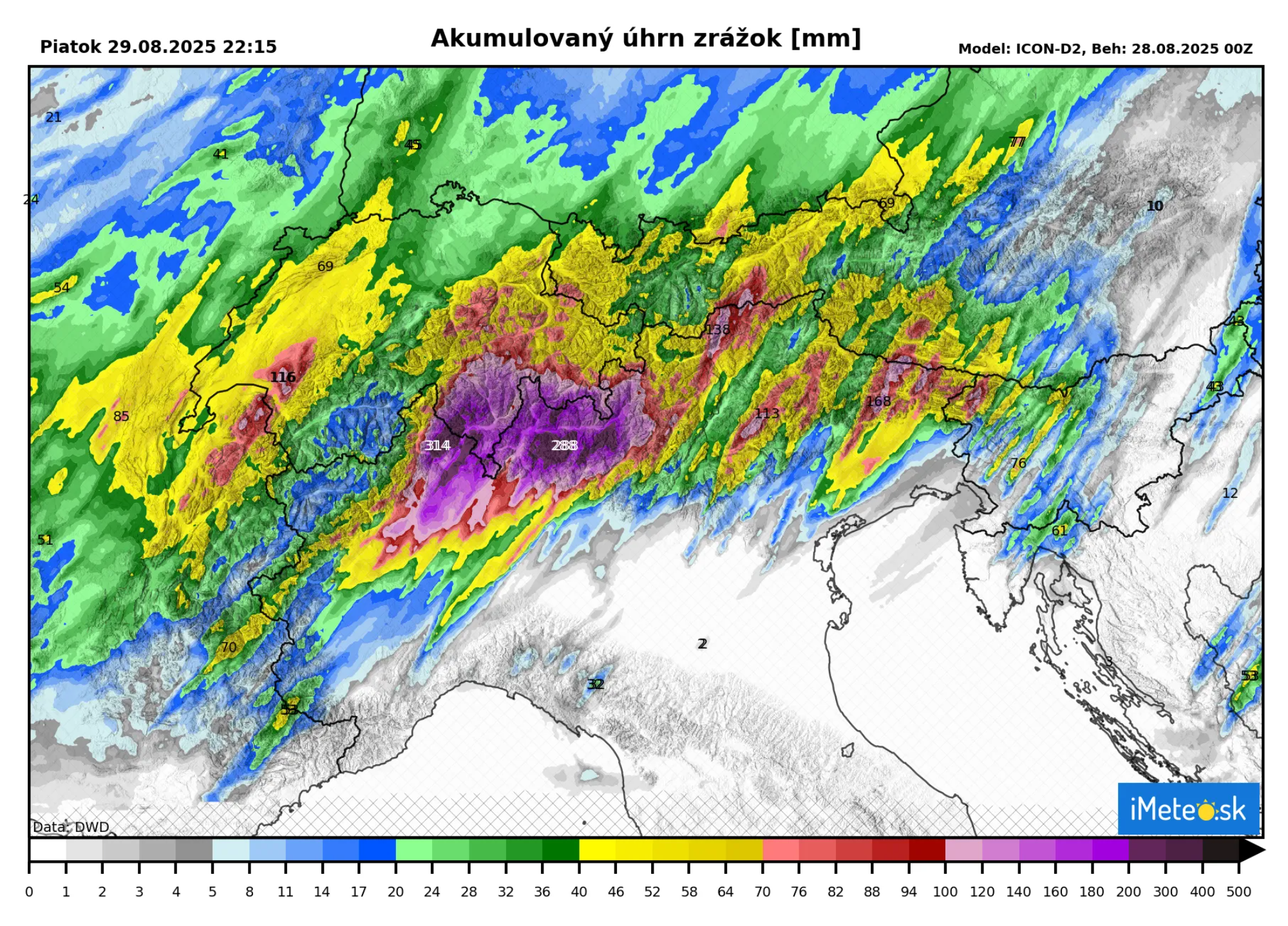 Švajčiarske úrady vydali pre oblasť južných Álp výstrahu 3. stupňa pred extrémnymi zrážkami. Očakáva sa, že v priebehu dňa tu môže napršať neuveriteľných 200 až 260 mm zrážok, čo predstavuje množstvo vody, aké za normálnych okolností spadne za niekoľko mesiacov. Vrchol nebezpečnej situácie sa očakáva dnes od 6:00 do 18:00.