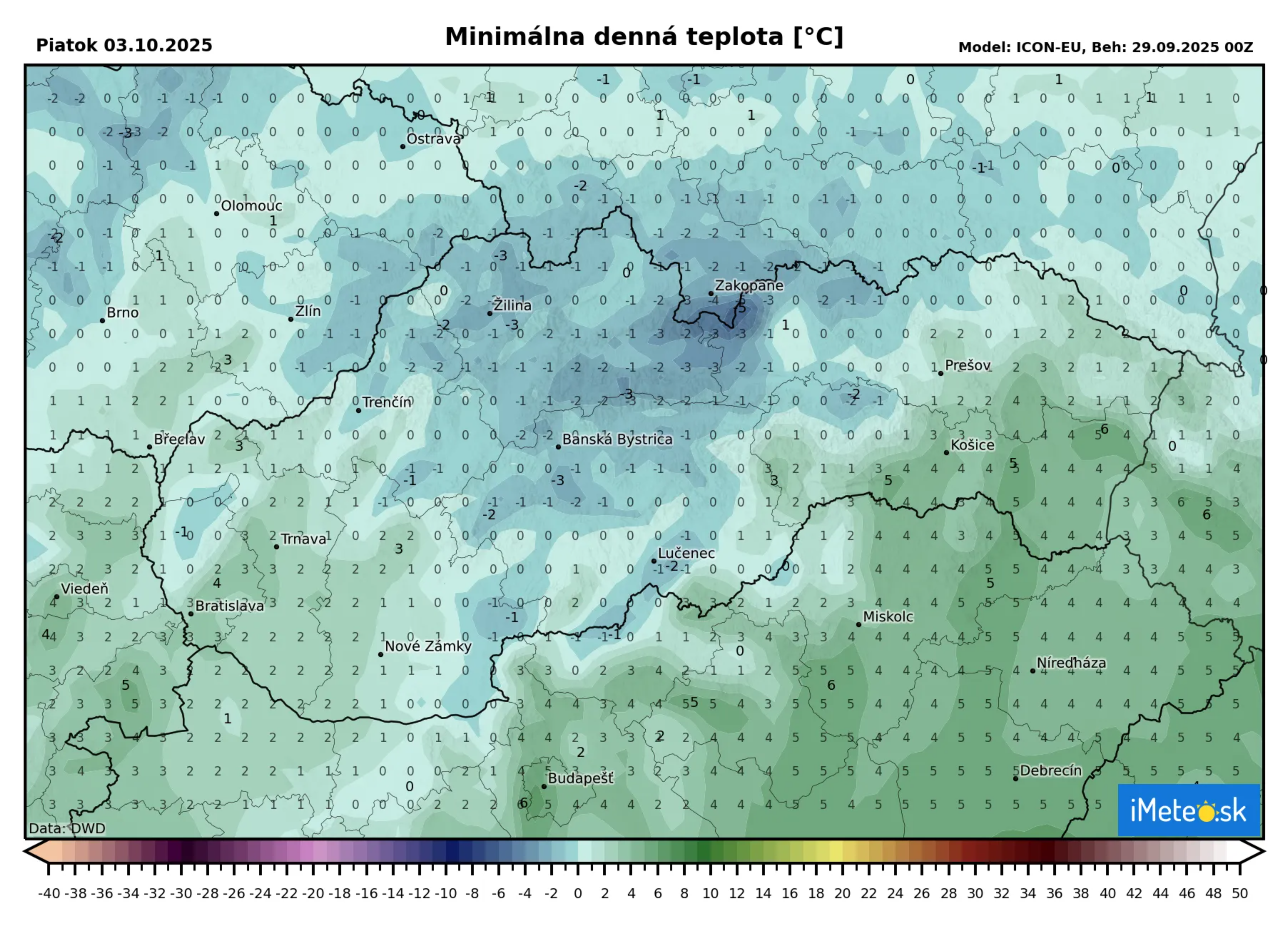 Ešte chladnejšie počasie nás čaká v noci. Nočné teploty budú na našom území klesať na +5 až -1 °C, pričom najchladnejšie bude v noci na piatok. Počas tejto noci by mali teploty klesať na +4 až -4 °C.
