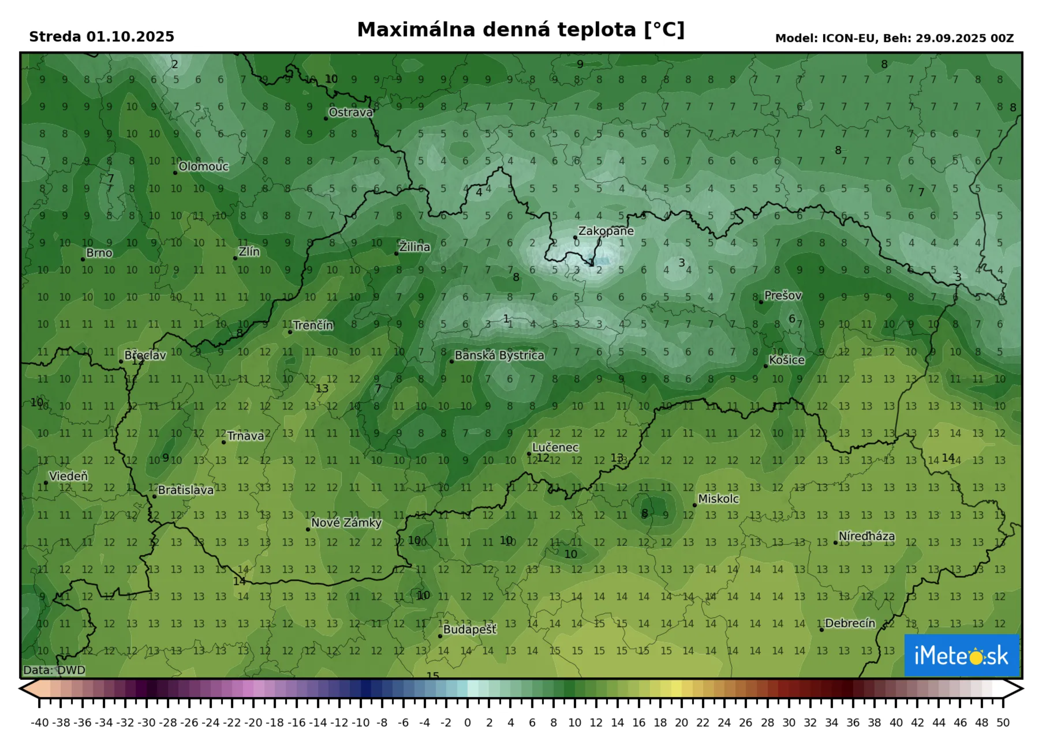 Prvý októbrový deň, teda v stredu nás čakajú maximálne teploty od +5 do +13 °C, čo bude o 8 až 11 °C nižšie, ako je na súčasnú ročnú dobu bežné.