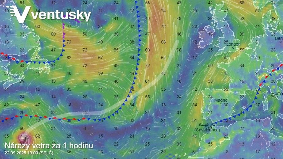 Späť do Európy. Aj tu totiž hrozí nebezpečné počasie. Nad Atlantikom sa začína formovať hurikán, ktorý si to namieri do Európy.
