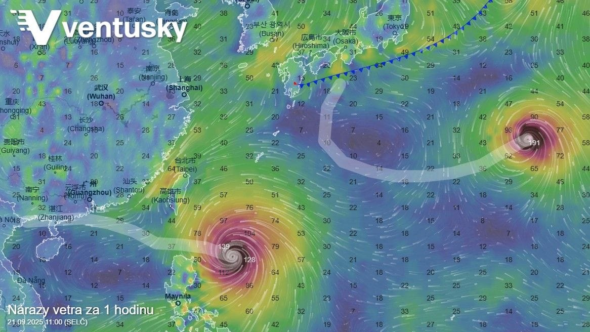 Veľmi dynamická situácia aktuálne panuje v západnom Tichomorí, kde sa formujú a naberajú na sile hneď dva tajfúny. Medzi Taiwanom a Filipínami sa nachádza tajfún RAGASA, ktorý postupuje smerom nad pevninskú Čínu, kde sa dostane v utorok.