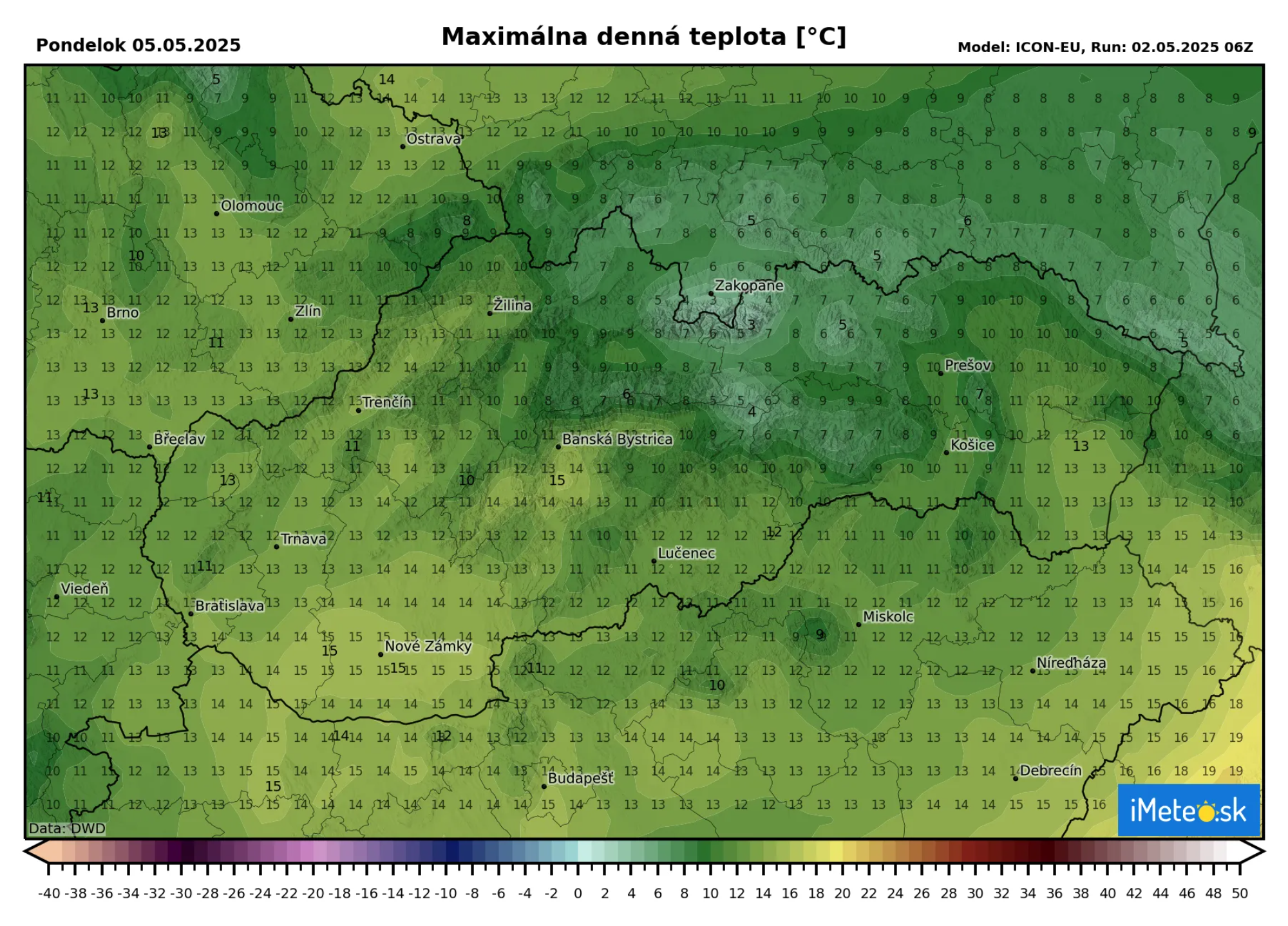 Po prechode studeného frontu začne do našej oblasti od severu prúdiť veľmi chladný, pôvodom arktický vzduch, čo sa prejaví na výraznom ochladení. Zatiaľ čo v sobotu budeme zažívať teploty okolo hranice +30 °C, pondelkové maximá sa budú pohybovať len od +7 do +13 °C, na juhozápade do +15 °C, čo je ochladenie až o 15 °C.