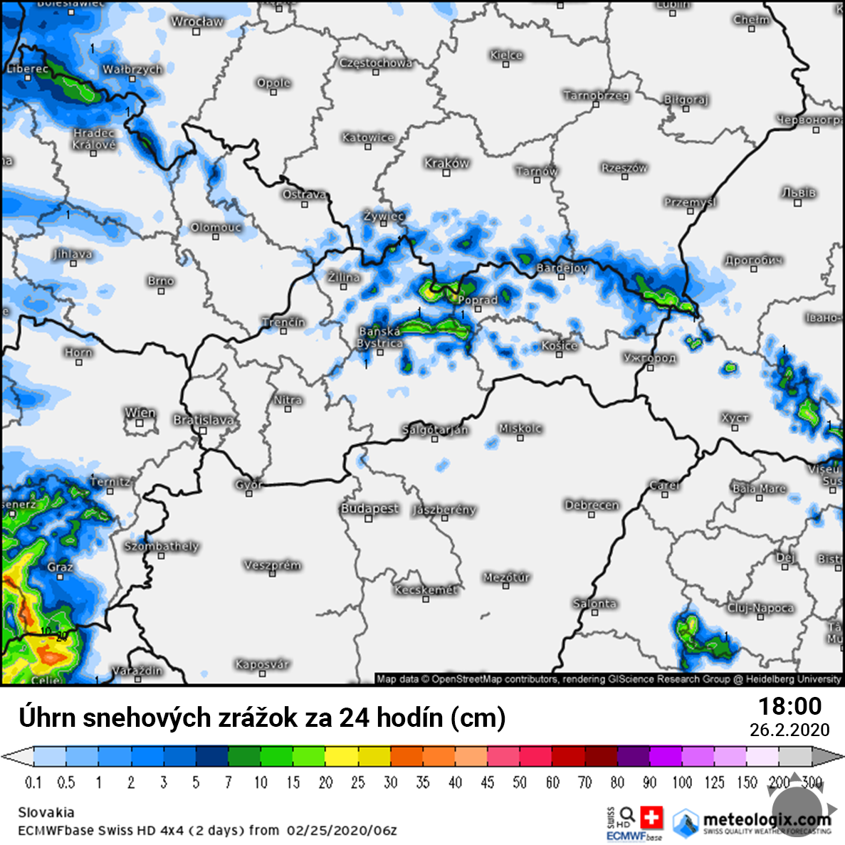 Snehové zrážky očakávame aj vo štvrtok dopoludnia, kedy bude severozápadné prúdenie pokračovať. S príchodom tlakovej níže, ktorá prinesie husté sneženie v piatok, zrážky ustanú. Následne sa očakávajú až vo večerných hodinách a v noci na piatok, na samotnej tlakovej níži.