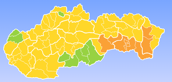 V platnosti je oficiálna výstraha 1. a 2. stupňa od SHMÚ, ktorá upozorňuje na veľmi silný vietor. Meteorológovia očakávajú, že v niektorých okresoch bude vietor mimoriadne nebezpečný.
