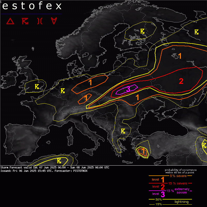 V našej oblasti sa dnes očakáva ďalšia vlna veľmi silných búrok, ktoré budú v niektorých štátoch aj extrémne. Silnejšie búrky sa vyskytnú aj na Slovensku, a to v druhej časti popoludnia a k večeru.