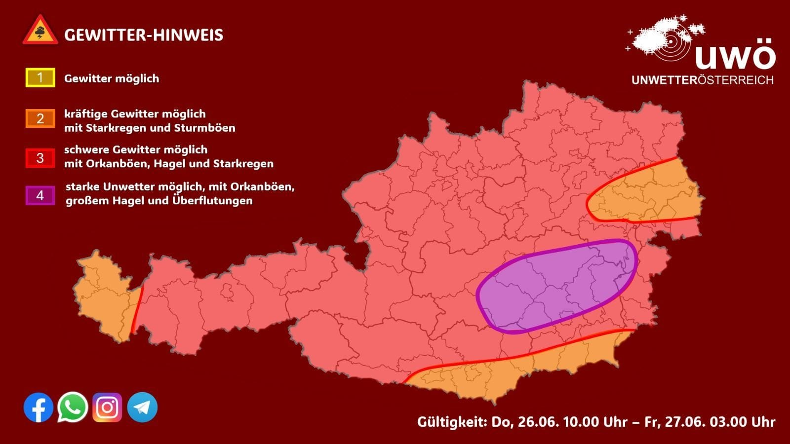 Našu oblasť dnes čaká vlna nebezpečných búrok, ktoré budú spôsobovať škody. Zatiaľ čo v Rakúsku hrozí výskyt predovšetkým veľkých krúp, tak na našom území sa treba pripraviť na veternú smršť, ktorá bude spôsobovať škody.