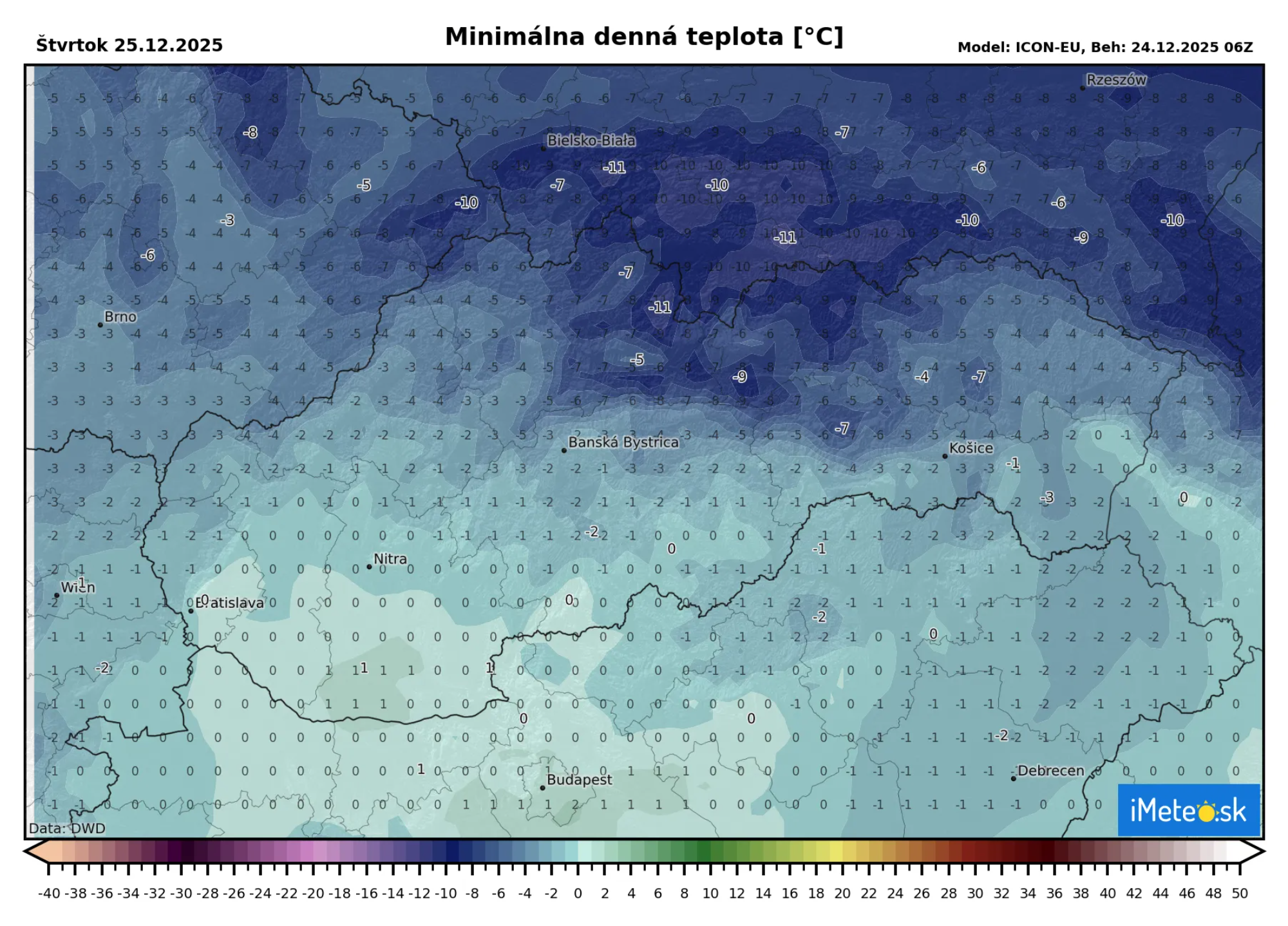 Prvý sviatok vianočný by mal byť spomedzi vianočných dní na Slovensku najchladnejší. Maximálne teplota sa dostane na 0 až +4 °C, ale na severe sa očakáva slabý, celodenný mráz.