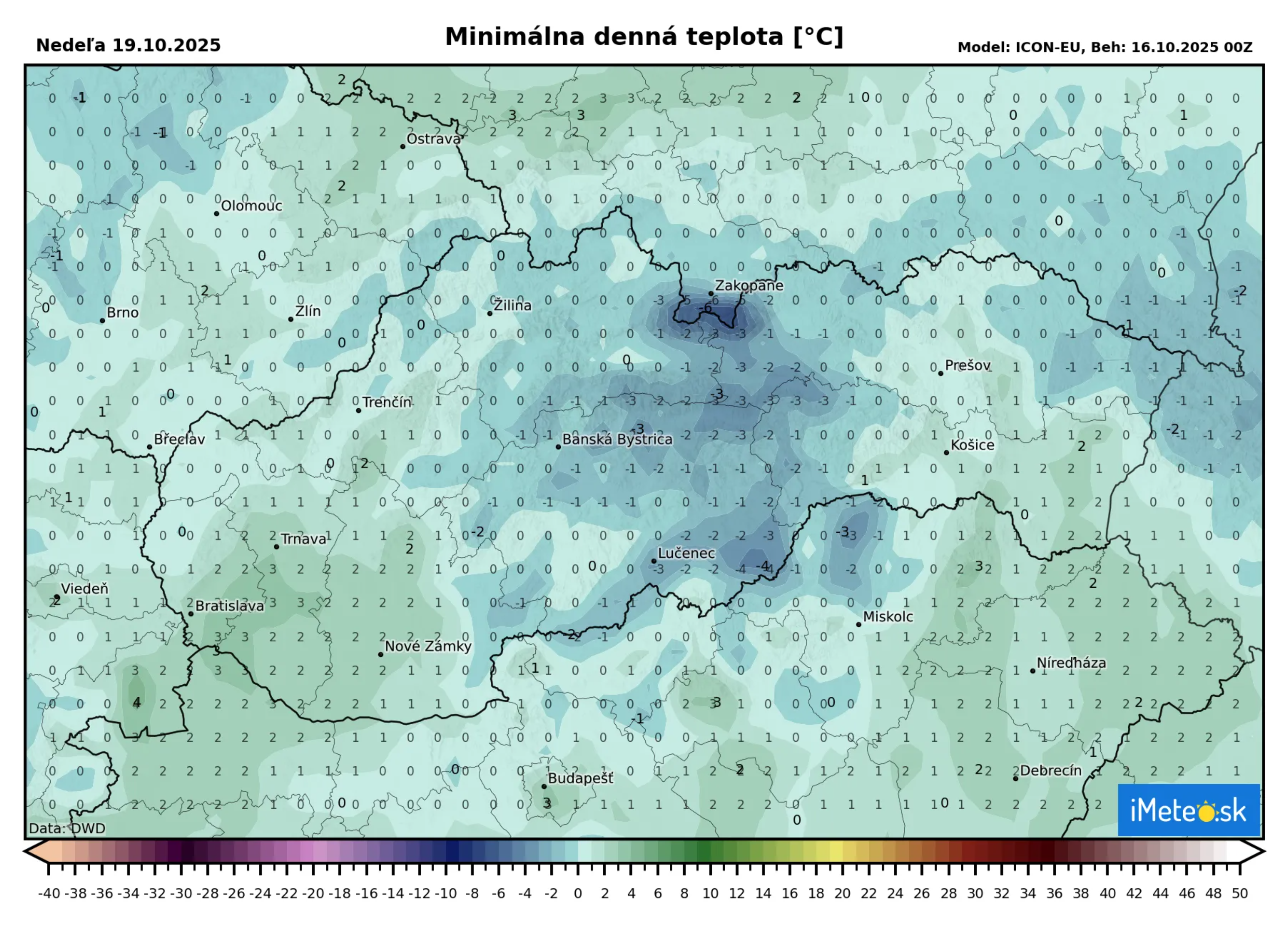 Zároveň sa na Slovensko vrátia aj nočné mrazy, ktoré očakávame v noci zo soboty na nedeľu, kedy teploty klesnú k -1 °C, v údoliach miestami okolo -3 °C.