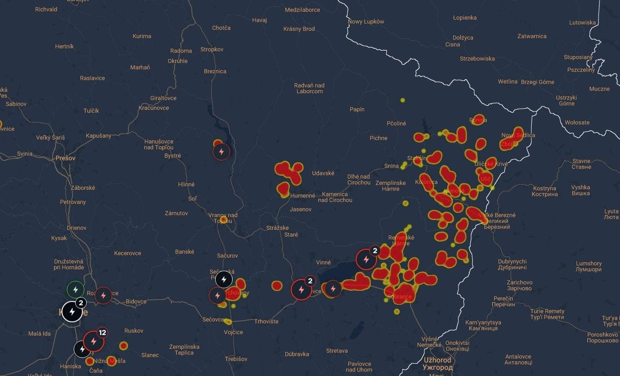 Intenzitu dnešnej búrkovej činnosti potvrdzuje aj blesková aktivita. Podľa siete Blitzortung udrelo na východnom Slovensku doposiaľ až 990 bleskov. Väčšina z nich bola sústredená práve pozdĺž pásma búrky, ktoré sa tiahlo naprieč celým východom krajiny.