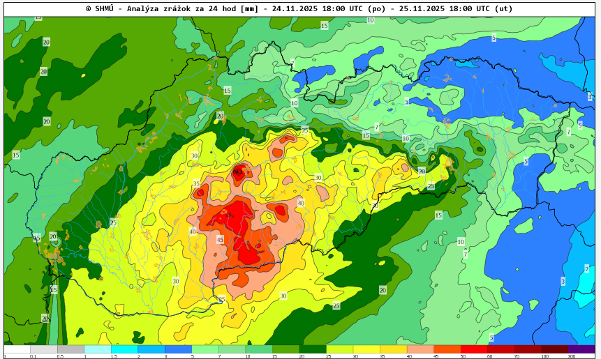 Už teraz zaznamenávame na Slovensku významné zrážkové úhrny. Za uplynulých 24 hodín spadlo najviac zrážok v Banskobystrickom kraji, kde sneh a dážď priniesli v uplynulých 24 hodinách od 40 do 60 mm zrážok.