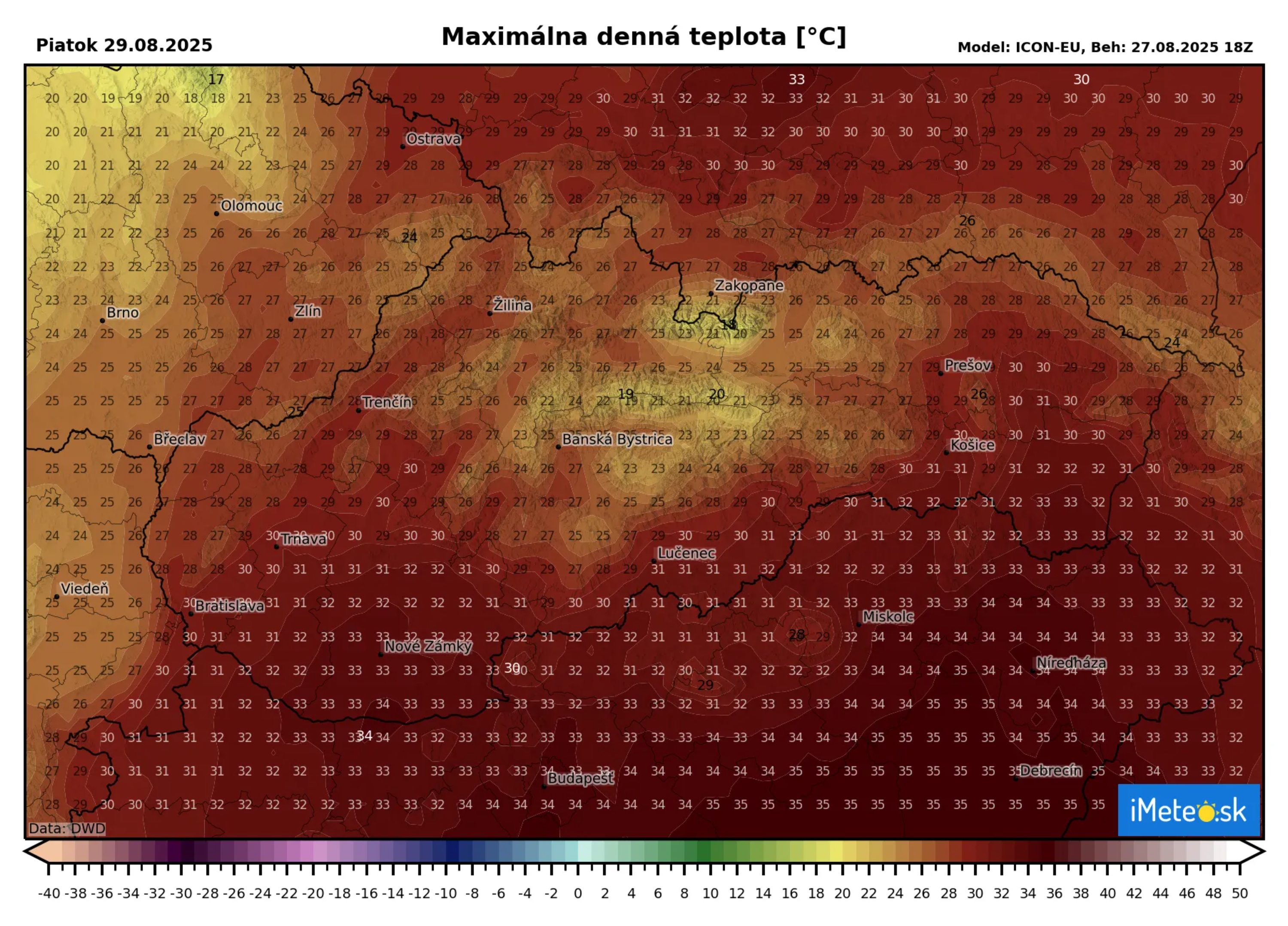 Dnes mnohé oblasti Slovenska zažijú posledné horúčavy tohto leta – teploty sa vyšplhajú k +29 až +34 °C, na severe miestami okolo +27 °C.