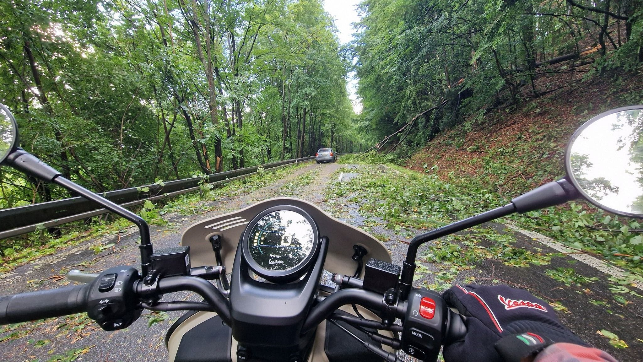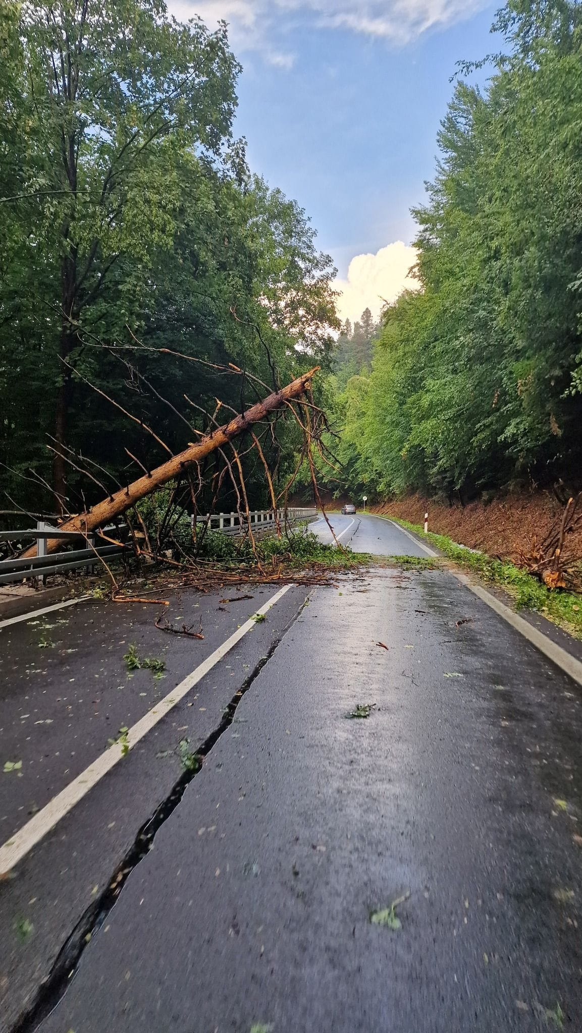Oblačnosť ďalej postupovala na východ a škody spôsobila aj severne od Košíc v oblasti Ružína, kde pre spadnuté stromy bola neprejazdná cesta. Na úseku zasahujú hasiči a odstraňujú spadnutý strom a popadané konáre.