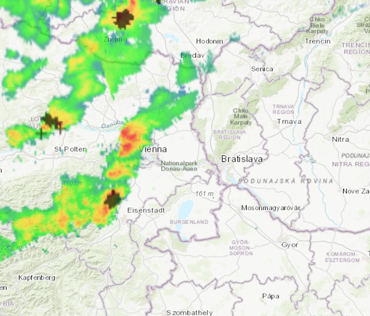 Už v najbližších minútach očakávame ďalší nástup búrkovej bunky zo susedného Rakúska, tentokrát k nám však mieri supercela. Rakúsko trápia silné búrky s bleskami už od dopoludnia a je možné, že každú chvíľu sa toto nebezpečné počasie prejaví aj u nás.