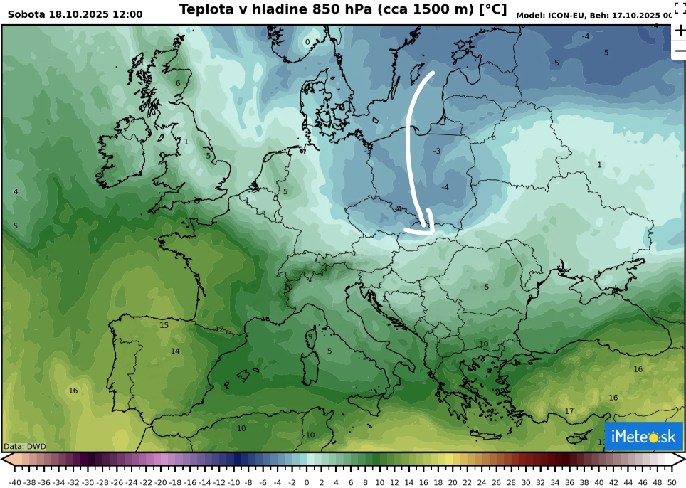 Zároveň sa však začne nasúvať spomínaná chladnejšia vzduchová hmota, čo spôsobí, že začne klesať hranica sneženia. Tá sa zníži na výšku okolo 1100 metrov, avšak do rána by mohla poklesnúť len na 800 metrov.
