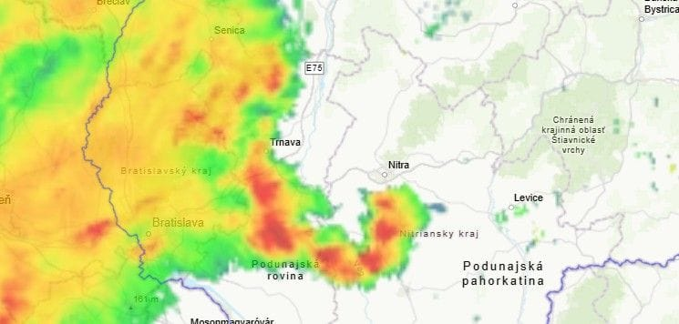 Iná situácia ale nastáva v Podunajskej nížine, kde sa začal formovať avizovaný búrkový systém.