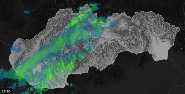 V oblasti severného a stredného Slovenska sa začalo vyskytovať sneženie, ktoré aktuálne zaznamenáva aj meteorologický radar. Toto sneženie je prevažne slabšie, no v oblasti Oravy sneží aj výraznejšie.