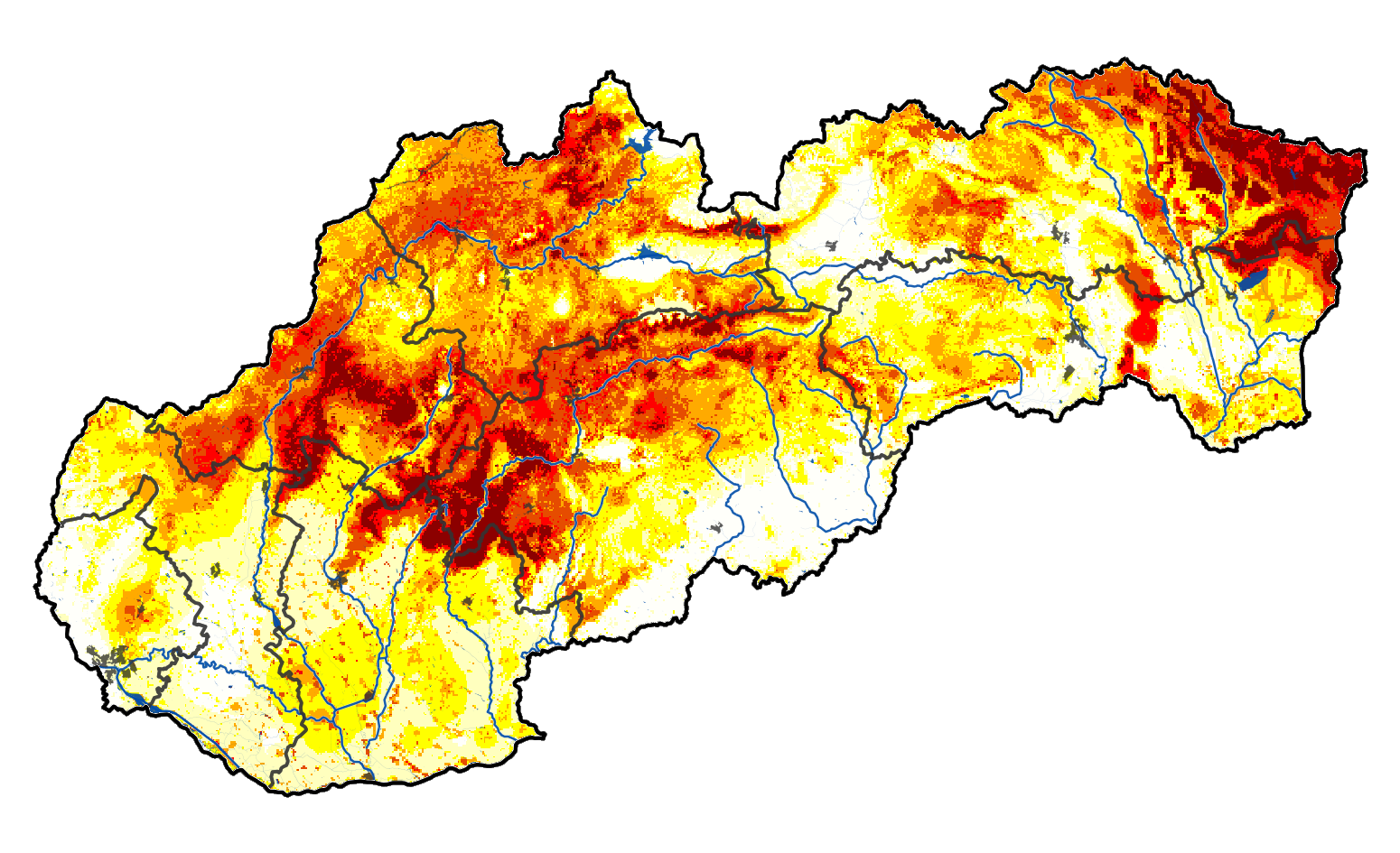 Extrémne sucho, ktoré predstavuje najvyšší stupeň ohrozenia, sa už rozprestiera na 6 % územia a sužuje najmä lokality na krajnom východe, ale aj v Trenčianskom, Banskobystrickom a Žilinskom kraji.