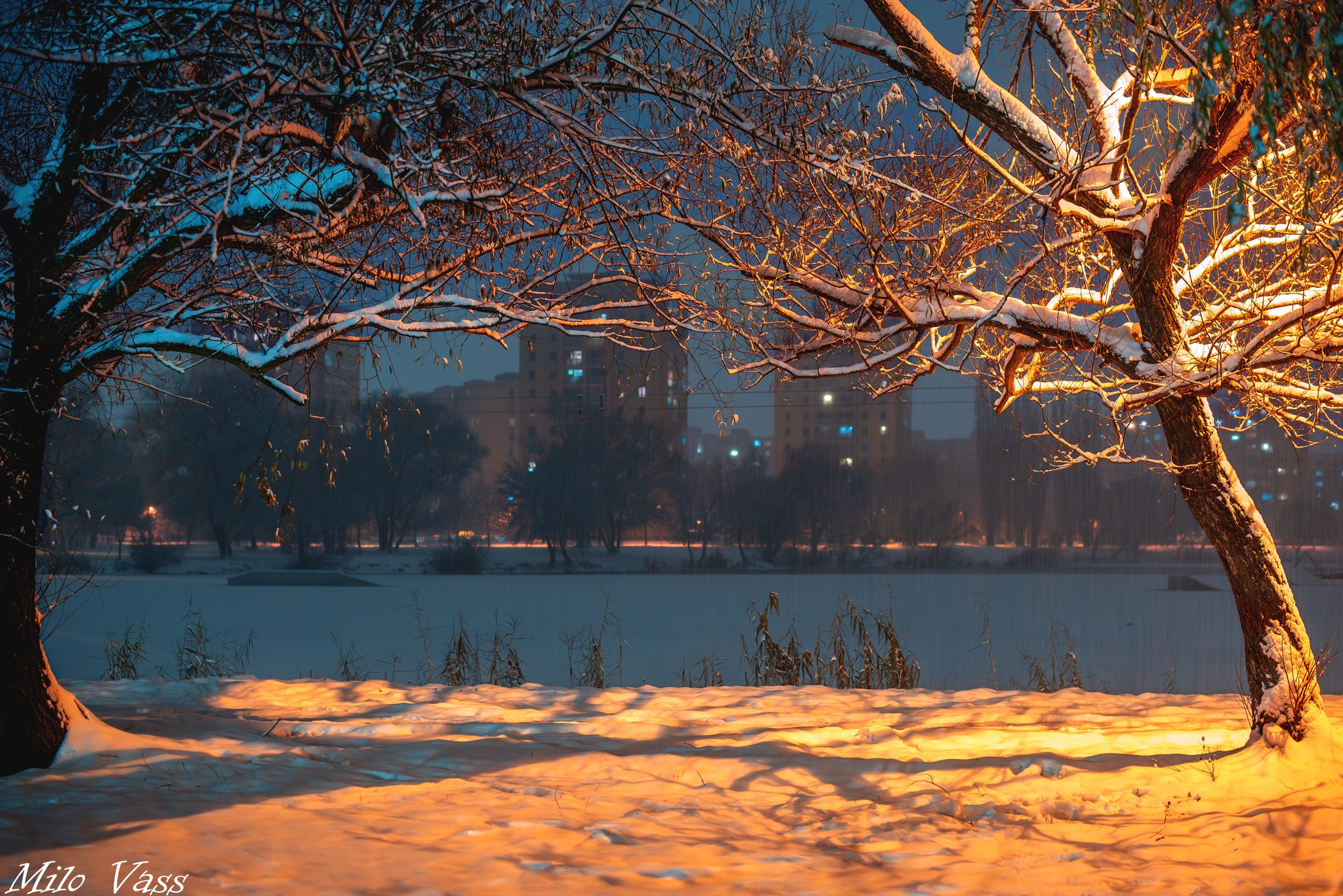 Zimnú idylku si aj dnes užívali obyvatelia v Košiciach. Takto to vo večerných hodinách vyzerá pri tamojšom jazere.