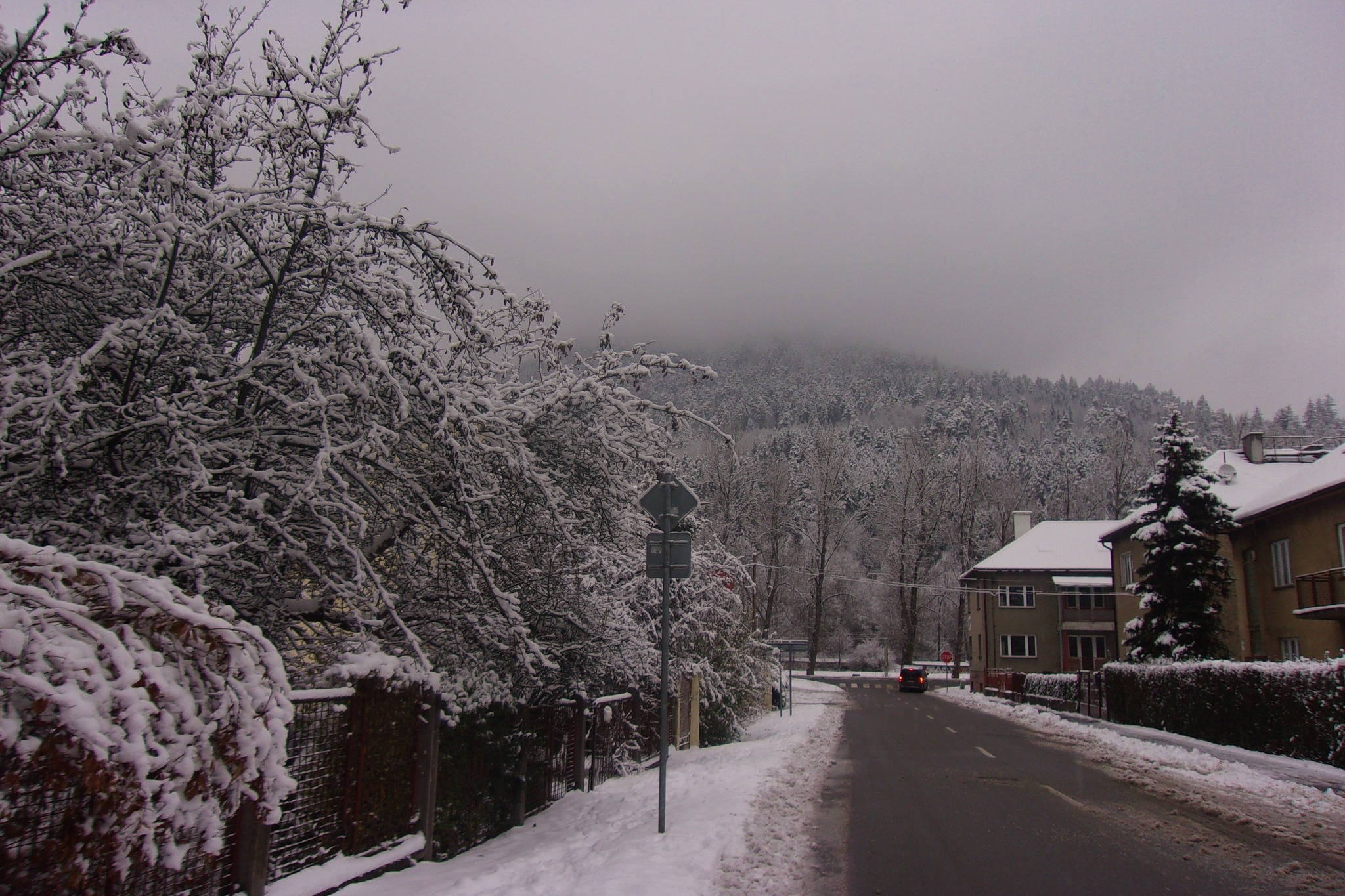 Ružomberok pod bielou perinou aj hmlou.