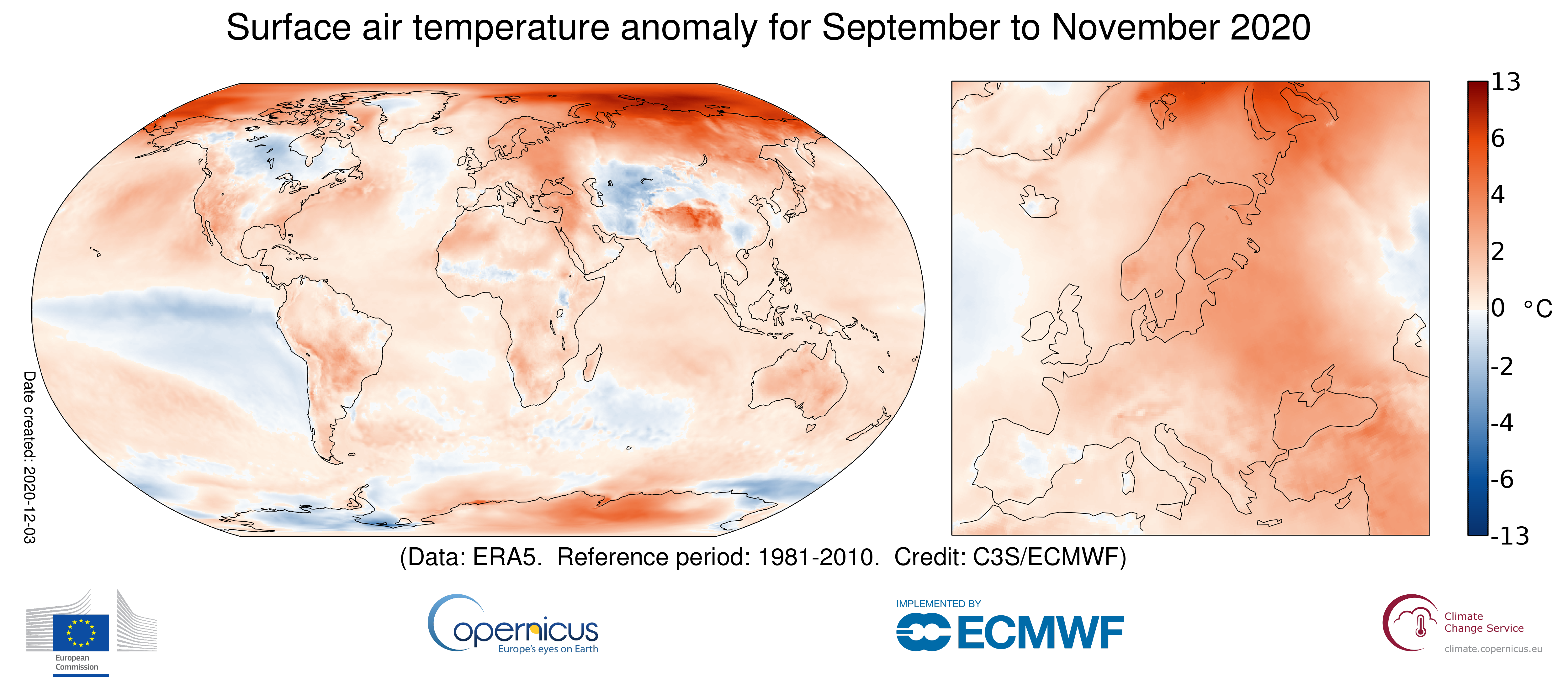 Teploty počas jesene v Európe presiahli o 0,4 °C rekord z roku 2006, kedy bola dovtedy zaznamenaná najteplejšia jeseň v Európe.