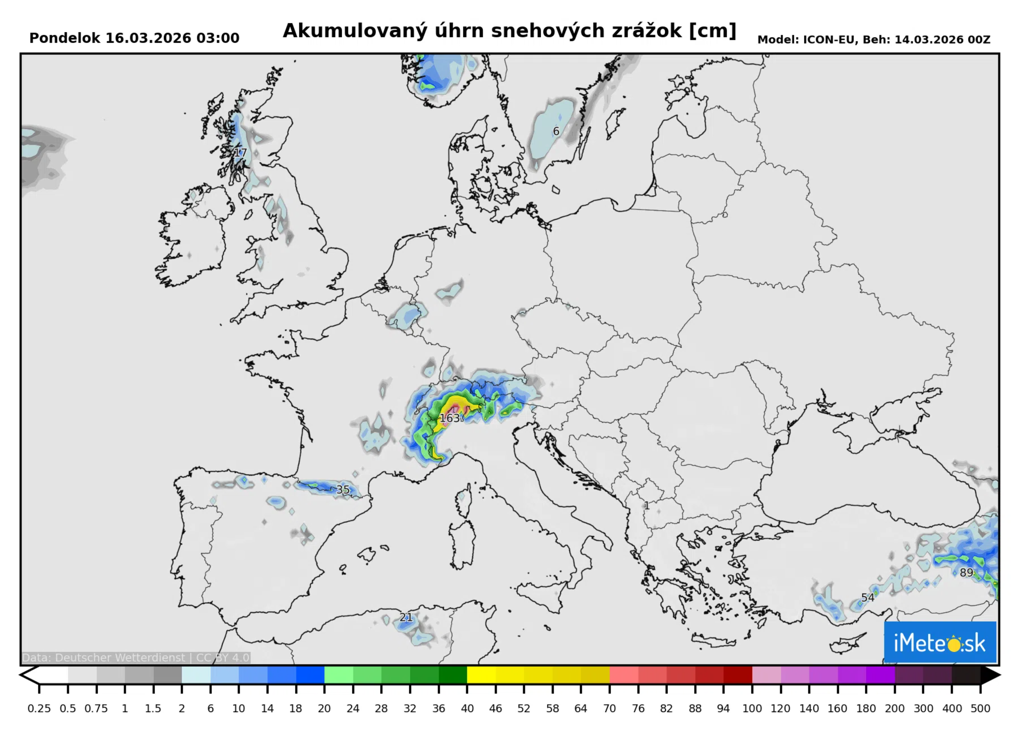 Intenzívne sneženie sa počas víkendu očakáva najmä v západnej časti Álp, kde by mohlo do pondelkového rána napadnúť ojedinele až okolo 150 cm nového snehu.