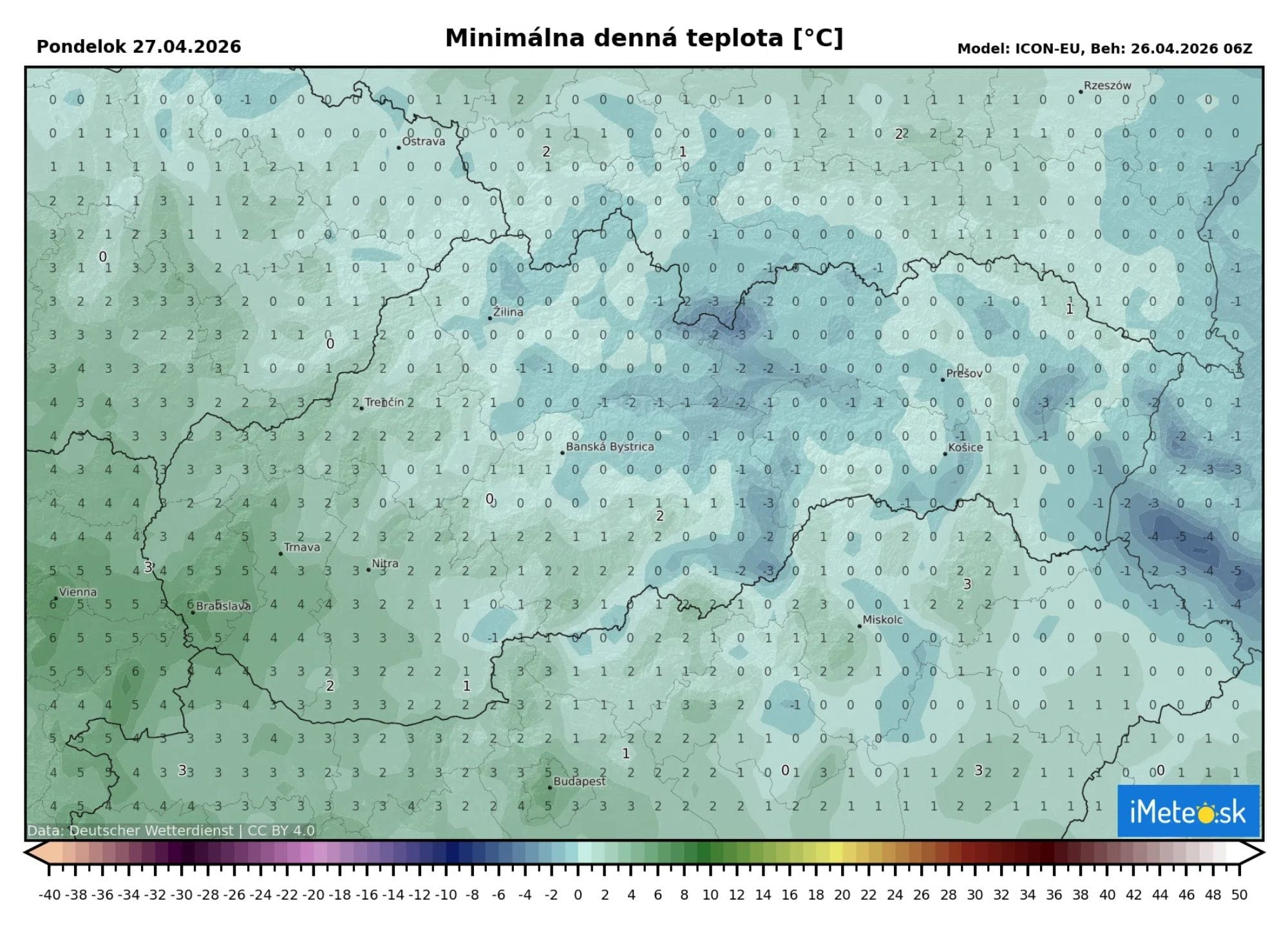 V noci z pondelka na utorok sa mrazy očakávajú už len výnimočne. V utorok by však cez naše územie mal postúpiť ďalší studený front, ktorý prinesie ďalšie ochladenie. V stredu ráno sa tak mrazy opäť vrátia, pričom najkritickejšia situácia sa aktuálne očakáva v noci zo stredy na štvrtok, keď sa mráz môže vyskytnúť prakticky na celom území.