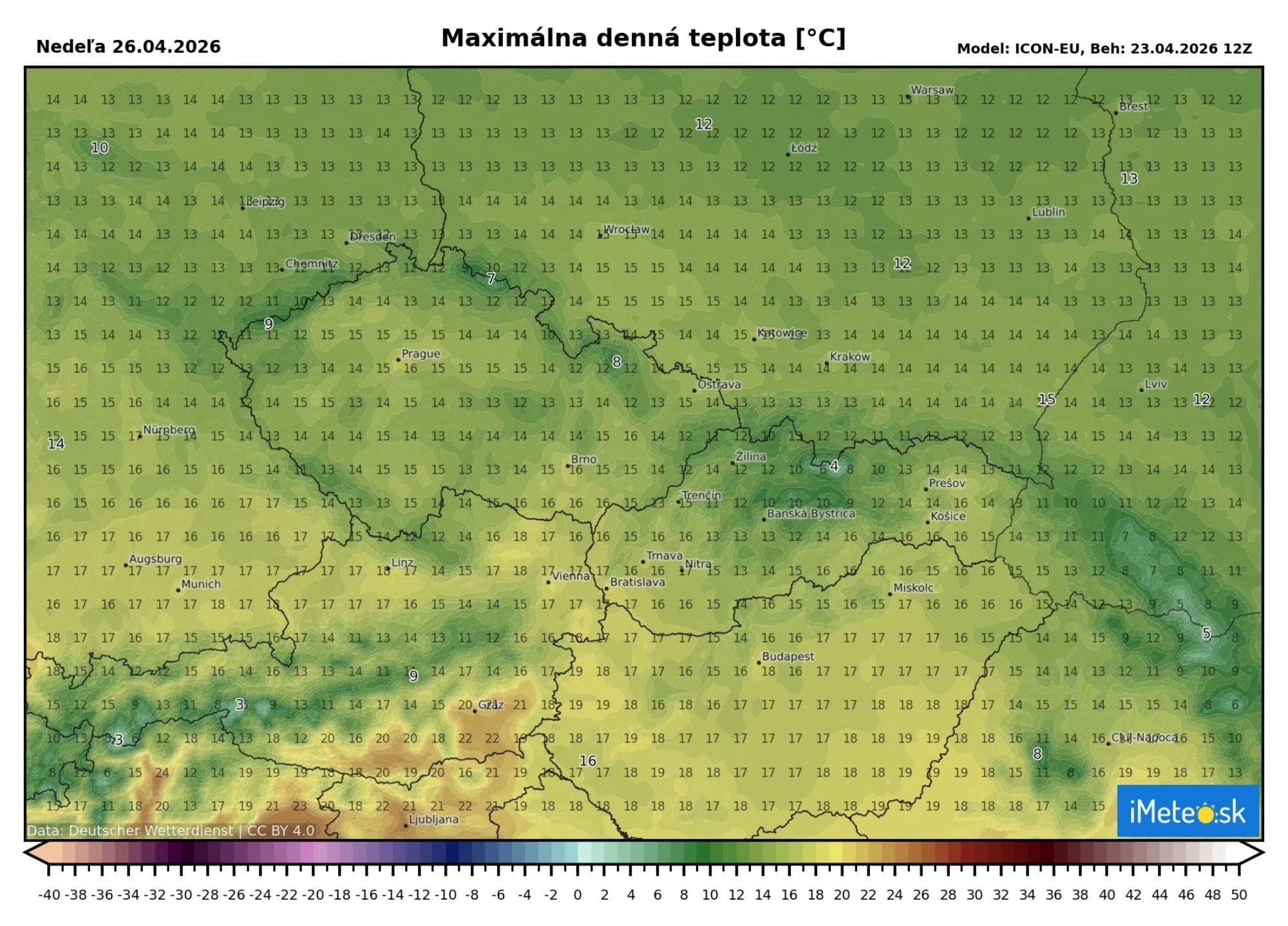 Maximálne denné teploty sa budú v nedeľu pohybovať od +8 do +16 °C.
