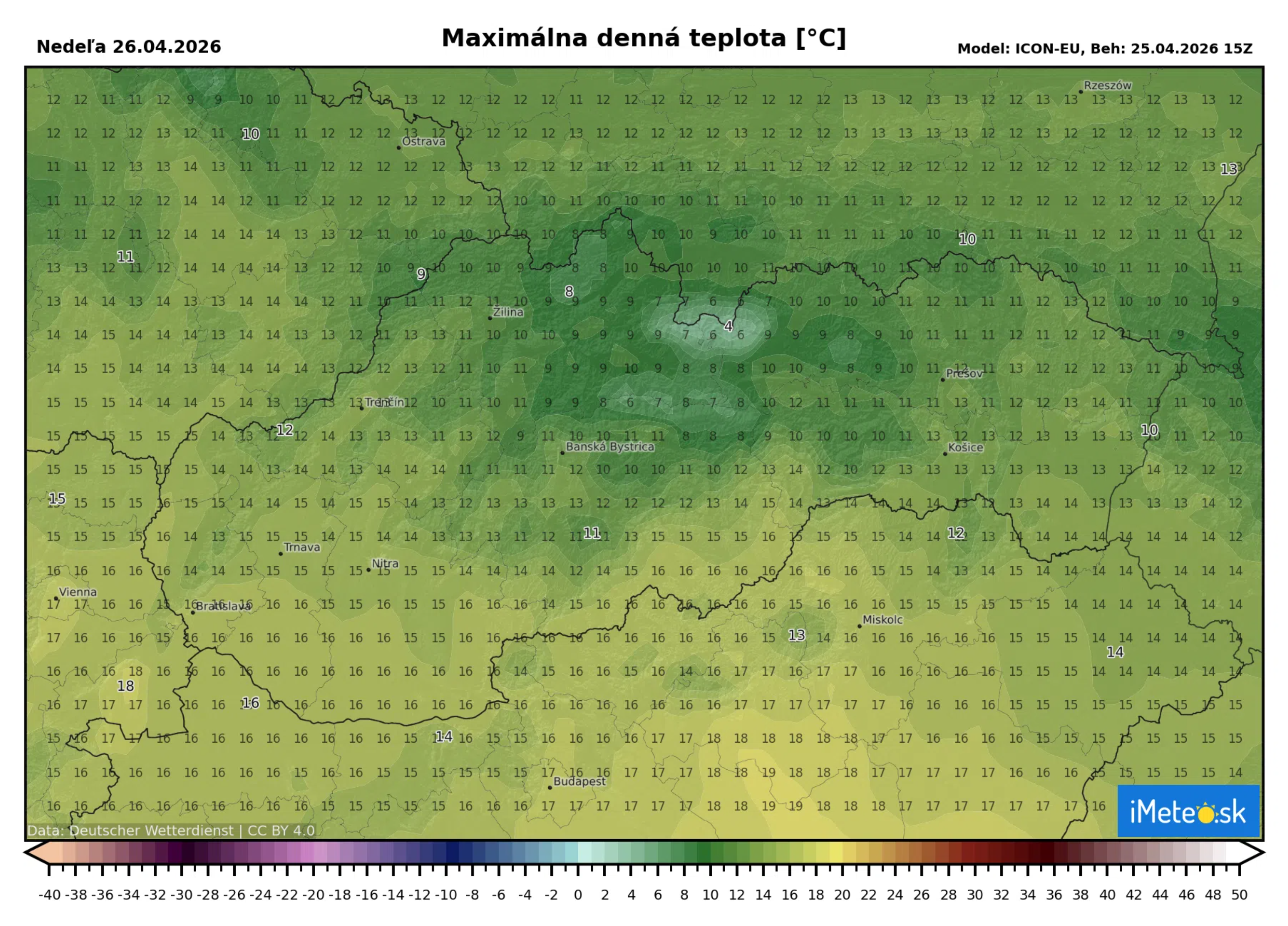 Najvyššia denná teplota dnes vystúpi len na +12 až +17 °C. V Žilinskom kraji, na Horehroní, Spiši a na krajnom severovýchode bude ešte chladnejšie, kde sa maximálne teploty budú pohybovať len od +7 do +12 °C. Ide o pokles o viac než 10 stupňov oproti včerajším maximám na niektorých miestach. Na horách vo výške okolo 1 500 metrov nad morom sa teplota zníži až na približne -1 °C, čo znamená návrat zimných podmienok vo vyšších nadmorských výškach.