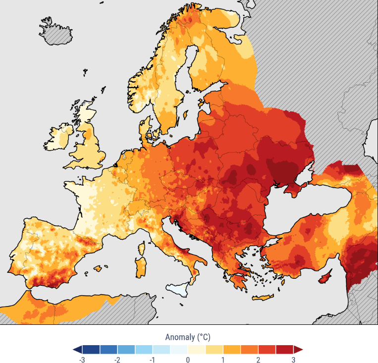 Južná a východná Európa čelila v lete extrémnym horúčavám a suchám. Podľa správy bol počet dní so závažným, veľmi ťažkým a extrémnym tepelným stresom – t. j. keď sa telo nedokáže efektívne ochladiť v dôsledku tepla – druhý najvyšší v európskej histórii.